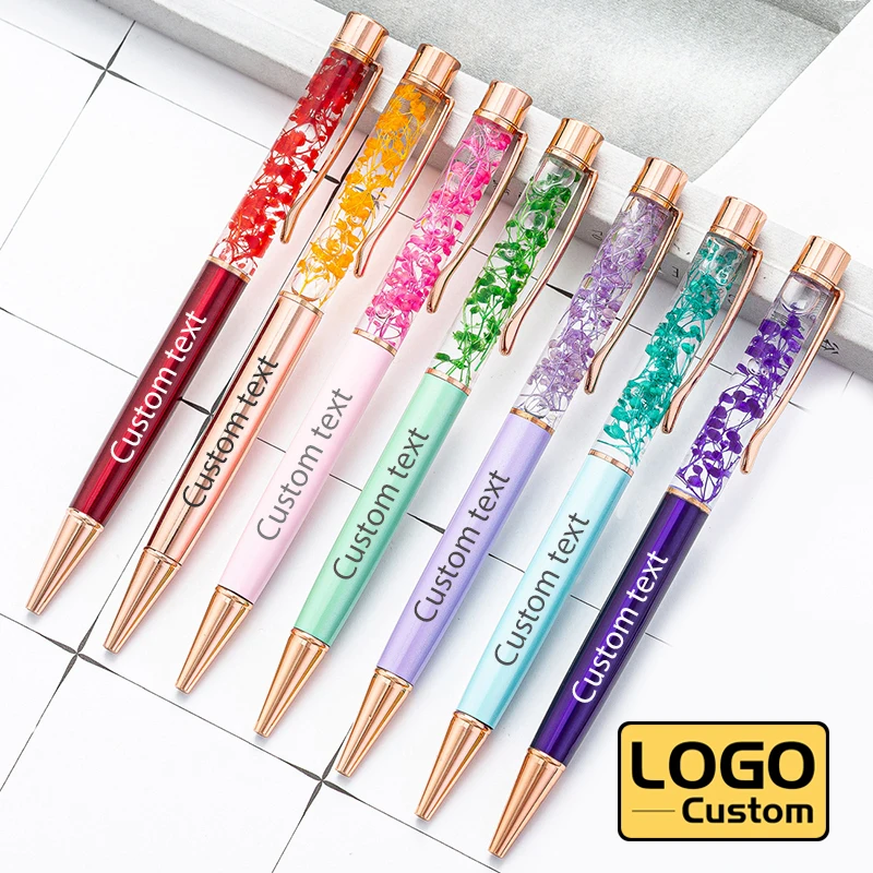 Подарочная ручка сделай сам, креативная ручка с высушенным маслом цветком, металлическая шариковая ручка с индивидуальным логотипом, Подарок на годовщину, надпись с именем, оптовая продажа, канцелярские принадлежности