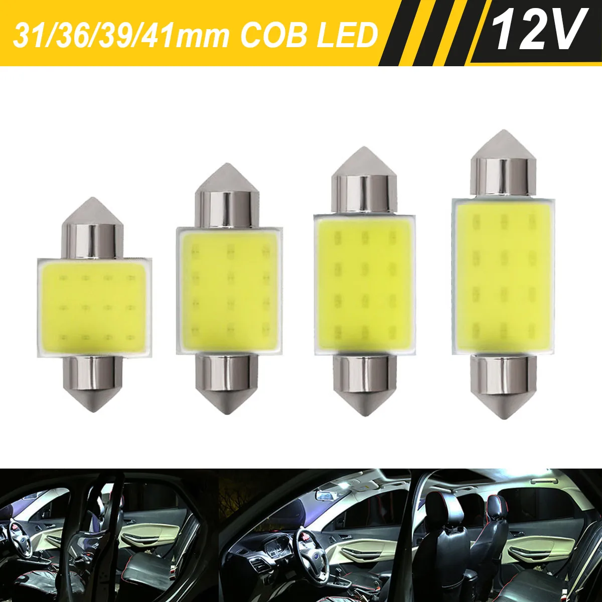 1x31 мм 36 мм 39 мм 42 мм C10W C5W Festoon COB светодиодный светильник для салона автомобиля, для чтения, потолочный светильник, лампа для номерного знака, белый DC 12V