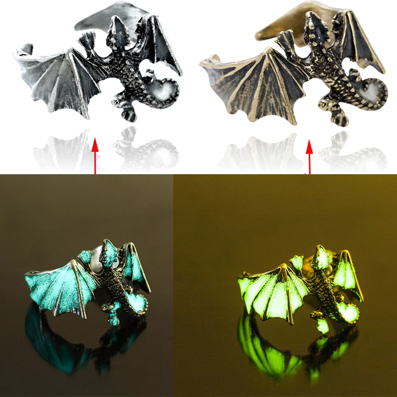 Готические серебристые кольца с драконом, винтажное открывающееся кольцо с животными для мужчин, светящиеся украшения для Хэллоуина, панк, светится в темноте