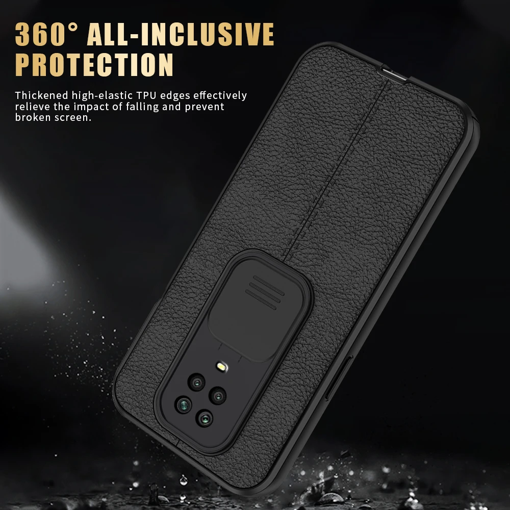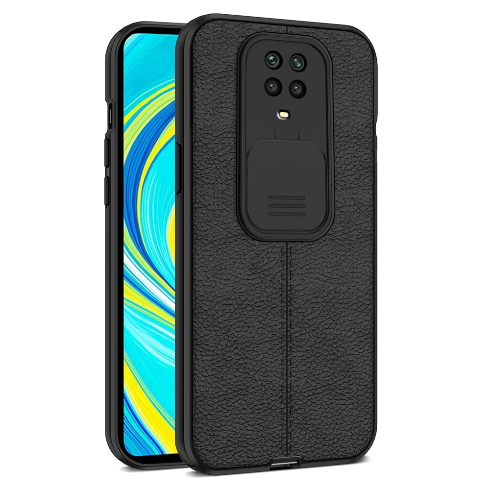 Кожаный чехол с текстурой для Xiaomi Redmi Note 9s Lens Push Pull P...