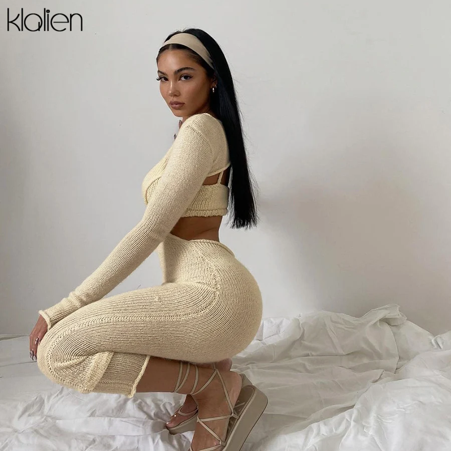 Женский трикотажный комплект из двух предметов Kliou, элегантный то...