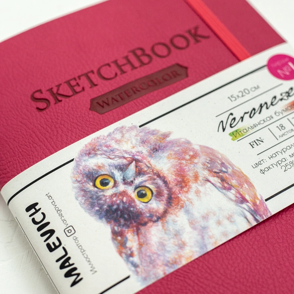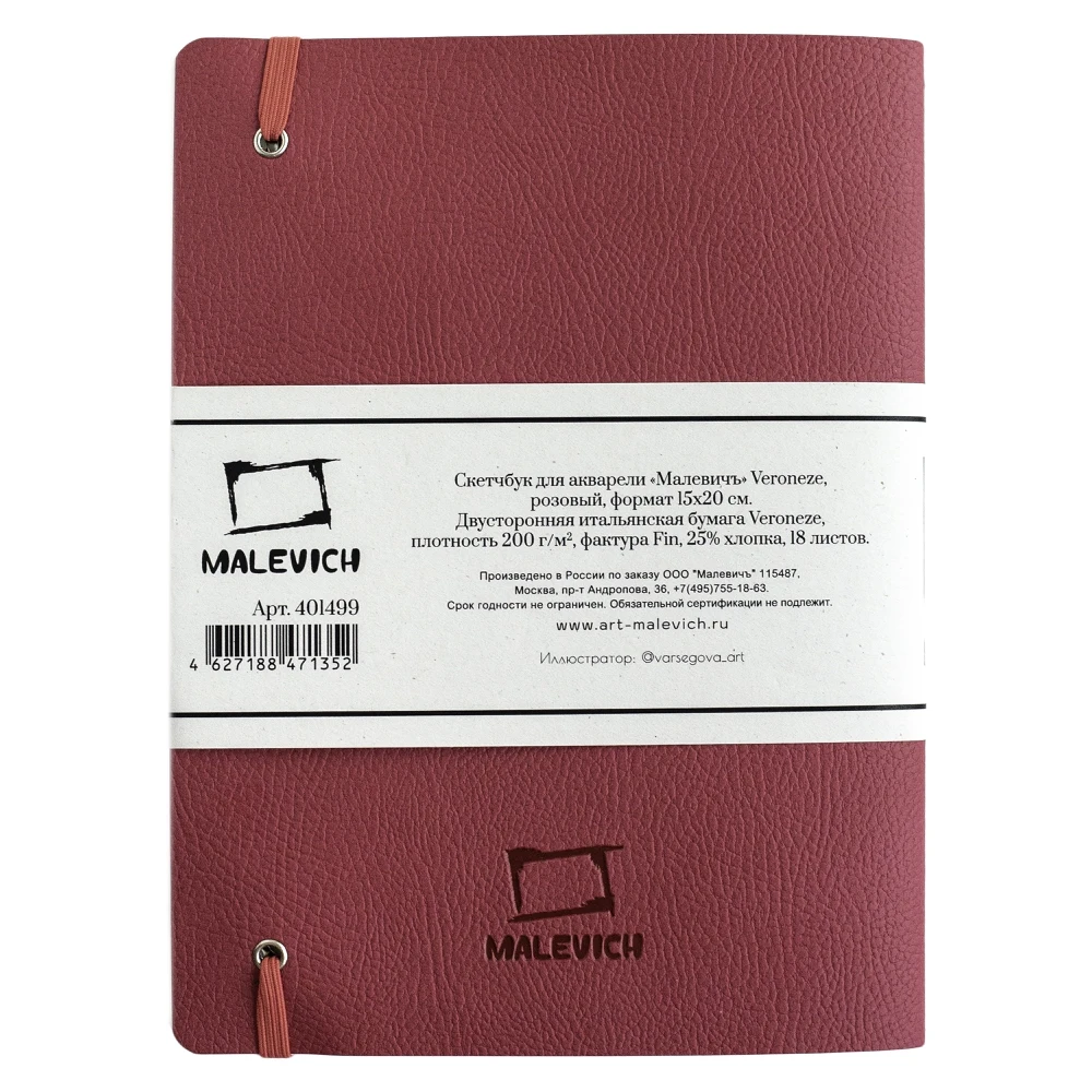Скетчбук для акварели Малевичъ Veroneze, розовый, 200 гм, 15x20 см, 18л