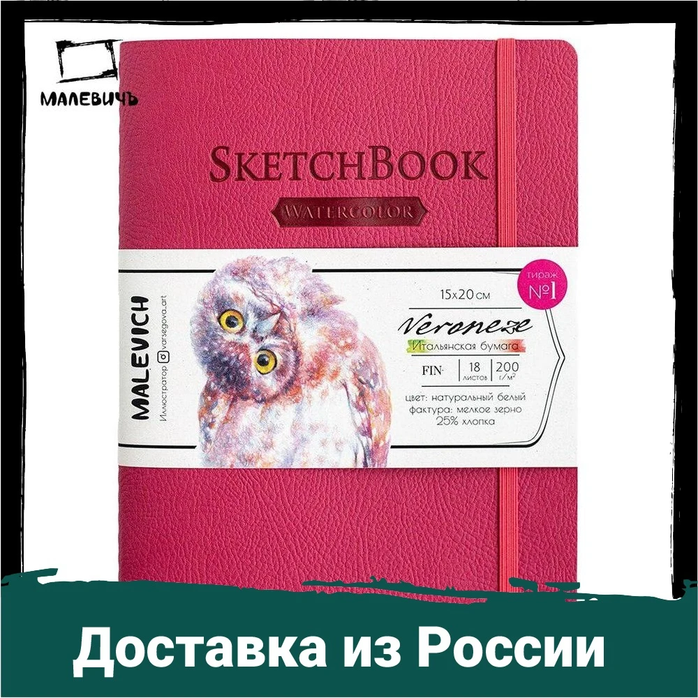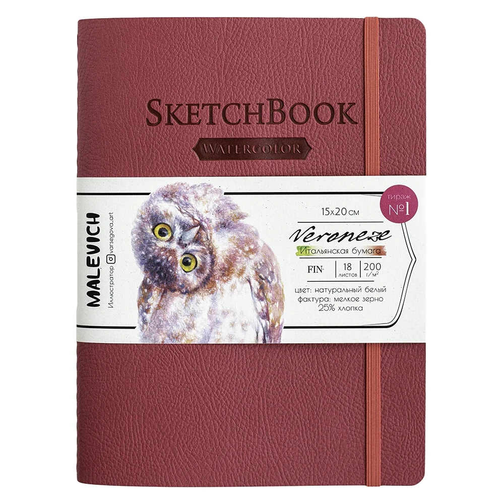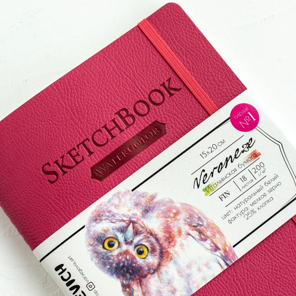 Скетчбук для акварельной живописи с ярким дизайном. Обложка из кож. зама с фирменным тиснением. Внутренний блок - 18 листов из двусторонней бумаги для акварели Veroneze Fin, 25% хлопка, 200 г/кв.м. в мягком переплете позволяют выбирать формат рисунка от одной страницы до разворота двух страниц. Резинка позволяет не только сохранить работы, но и обеспечивает функциональное удобство. Скетчбук для живописи акварелью (в том числе "по-сырому"), темперы, гуаши, акрила, чернил и графита. Отсутствие кислот в составе гарантирует длительную сохранность готовых работ.