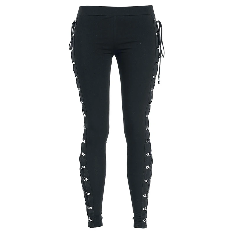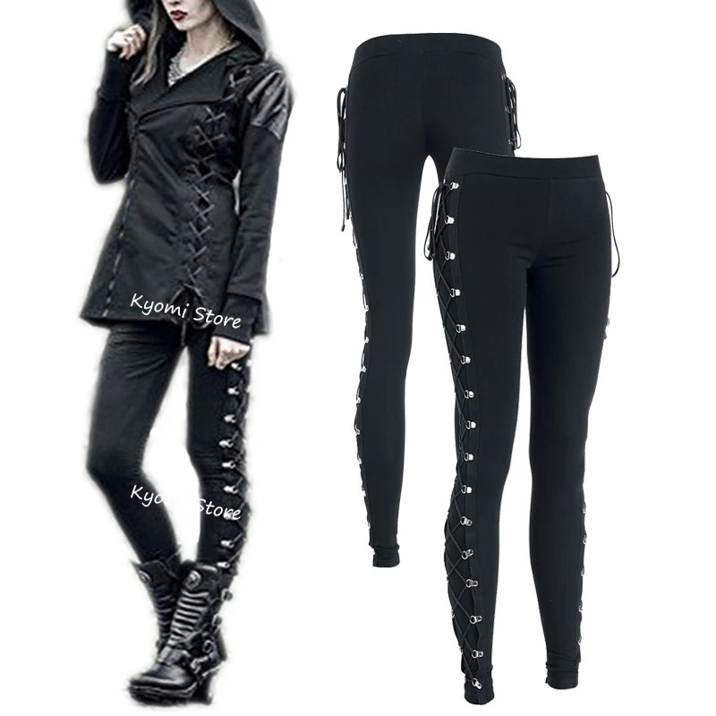 Женские легинсы, модные готические легинсы с боковыми шнуровками, л...