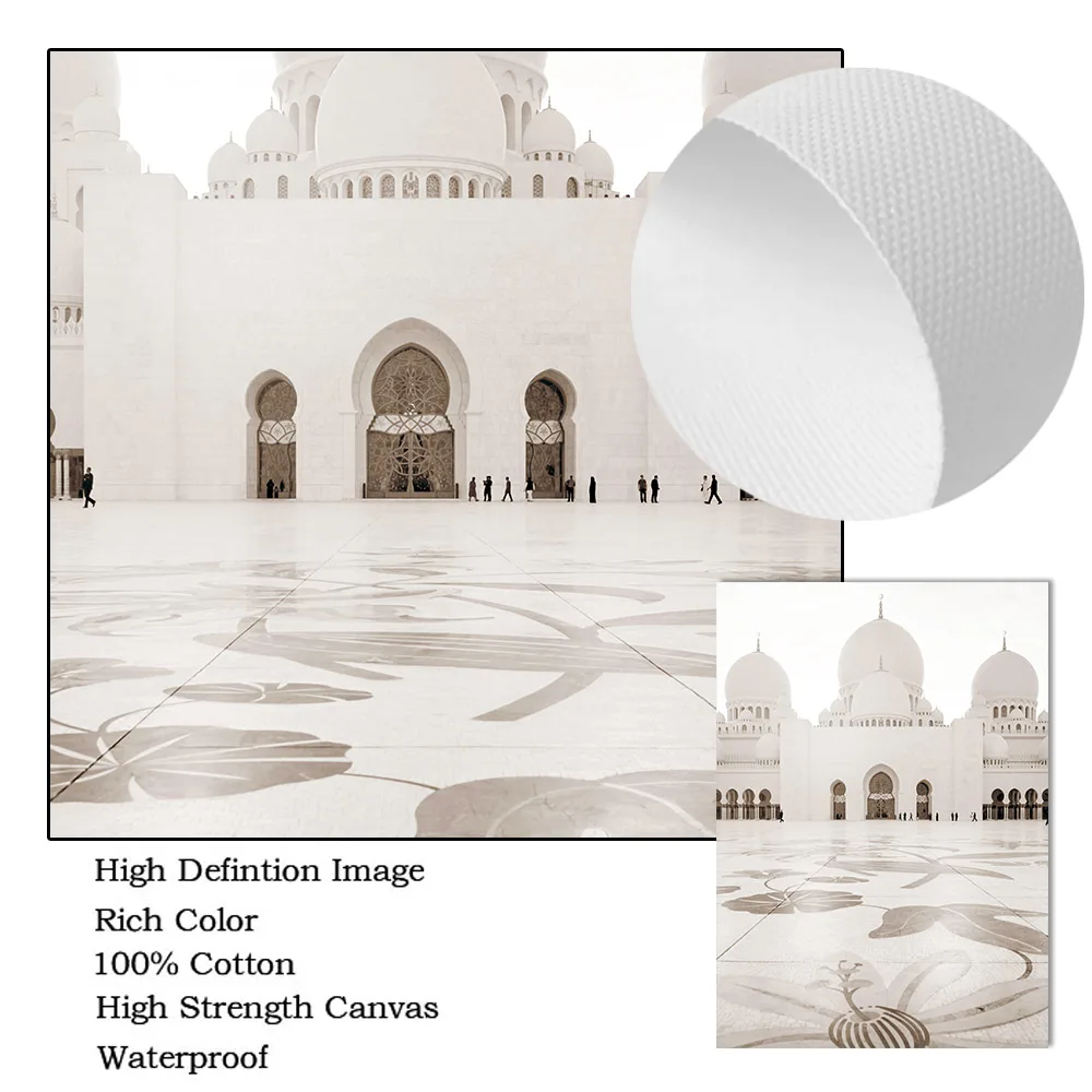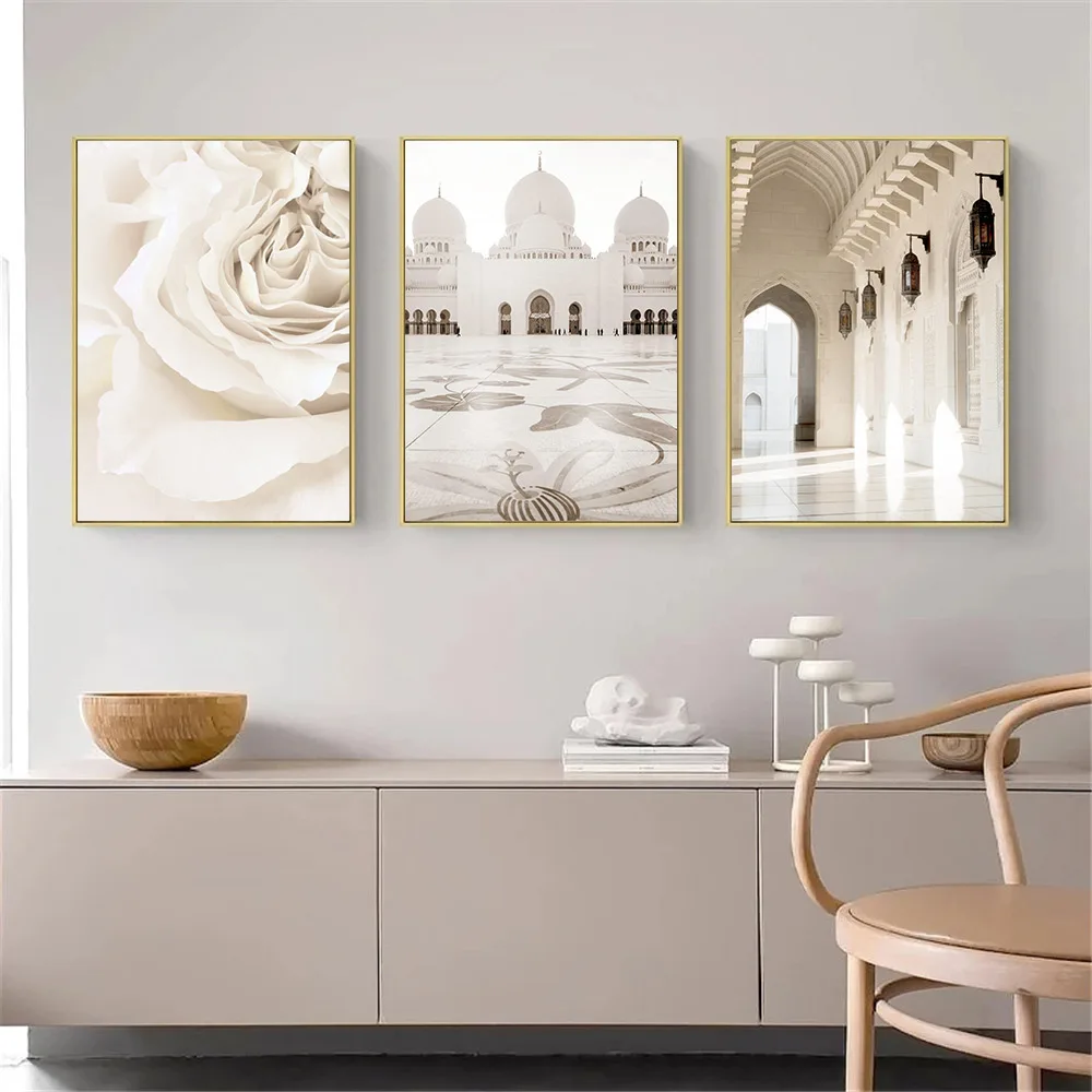 Бежевый цветочный плакат, Исламская фотография, тадж-махал, здание,...