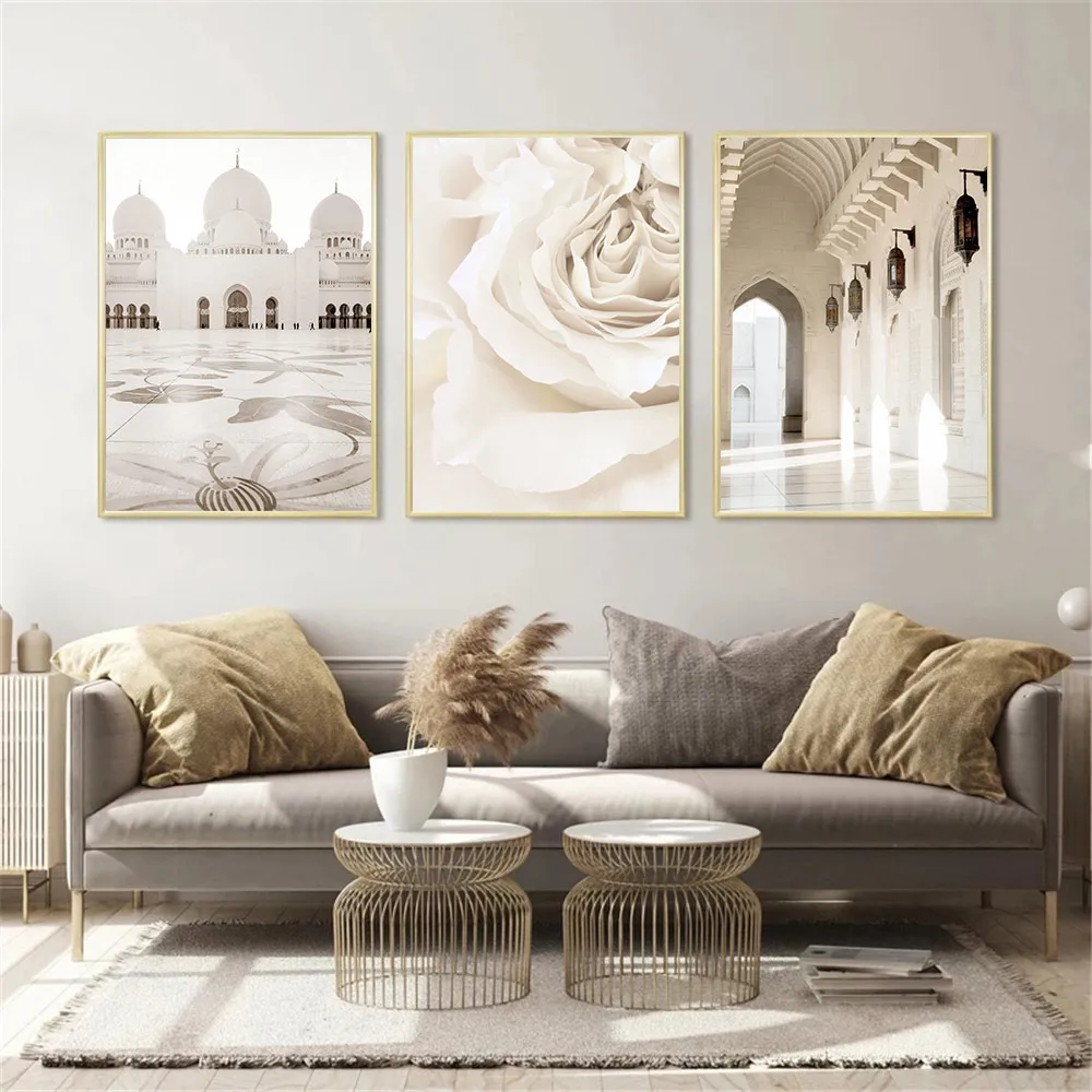 Настенная картина с изображением бежевых цветов, марокканских дверей, мусульманская Художественная печать, арабская каллиграфия, плакат, мечеть, мусульманские настенные картины, домашний декор