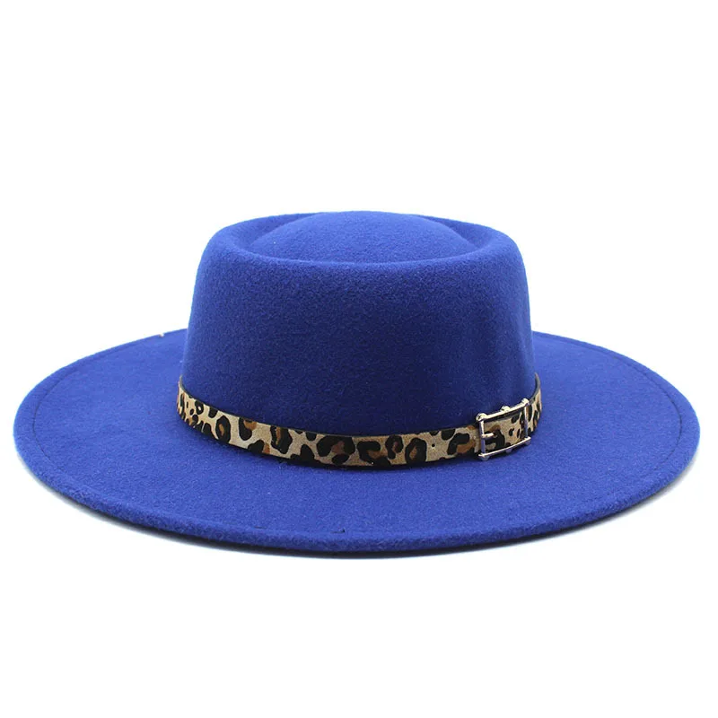 Шляпа фетровая унисекс, модная темно-синяя фетровая Панама с плоским верхом, с кольцом, для мужчин и женщин, Зимняя
