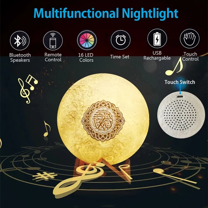 Часы Telawah Prime с динамиком ислама Корана, беспроводной Bluetooth светильник Ник, приемник, 3D Лунная лампа, динамик с Кораном, цветной мусульманский подарок
