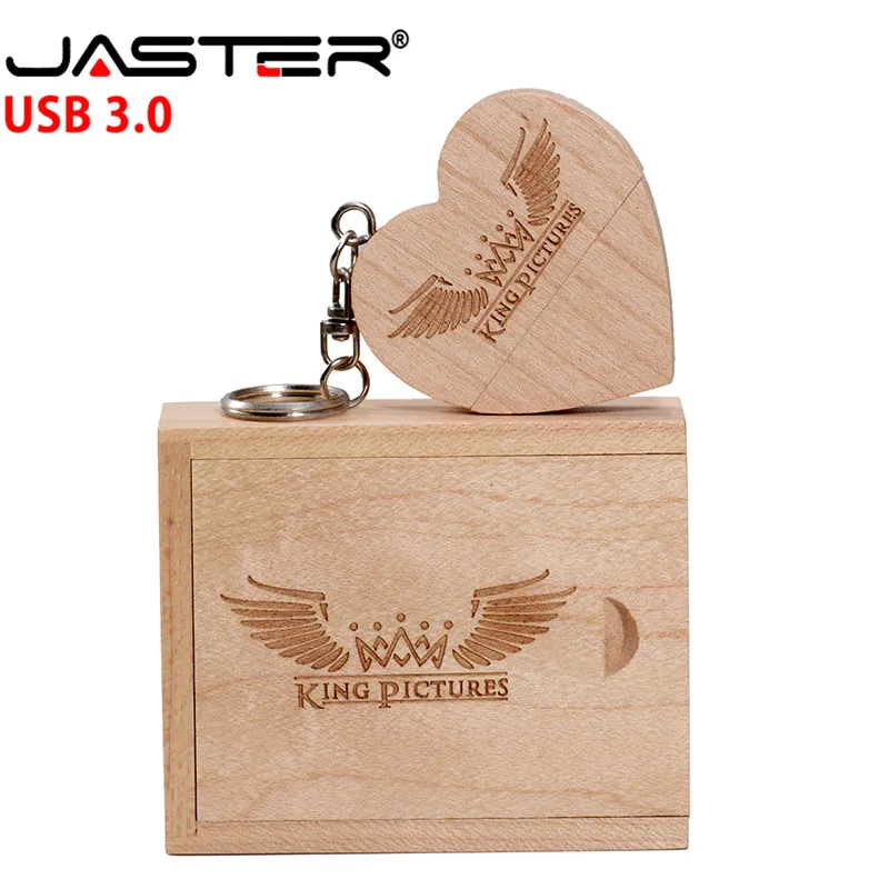 Лидер продаж 2018, деревянный USB флеш-накопитель JASTER в форме сердца с коробкой USB 3,0, 4 ГБ, 8 ГБ, 16 ГБ, 32 ГБ, 64 ГБ, USB флеш-накопитель (Бесплатный Пользовательский логотип)