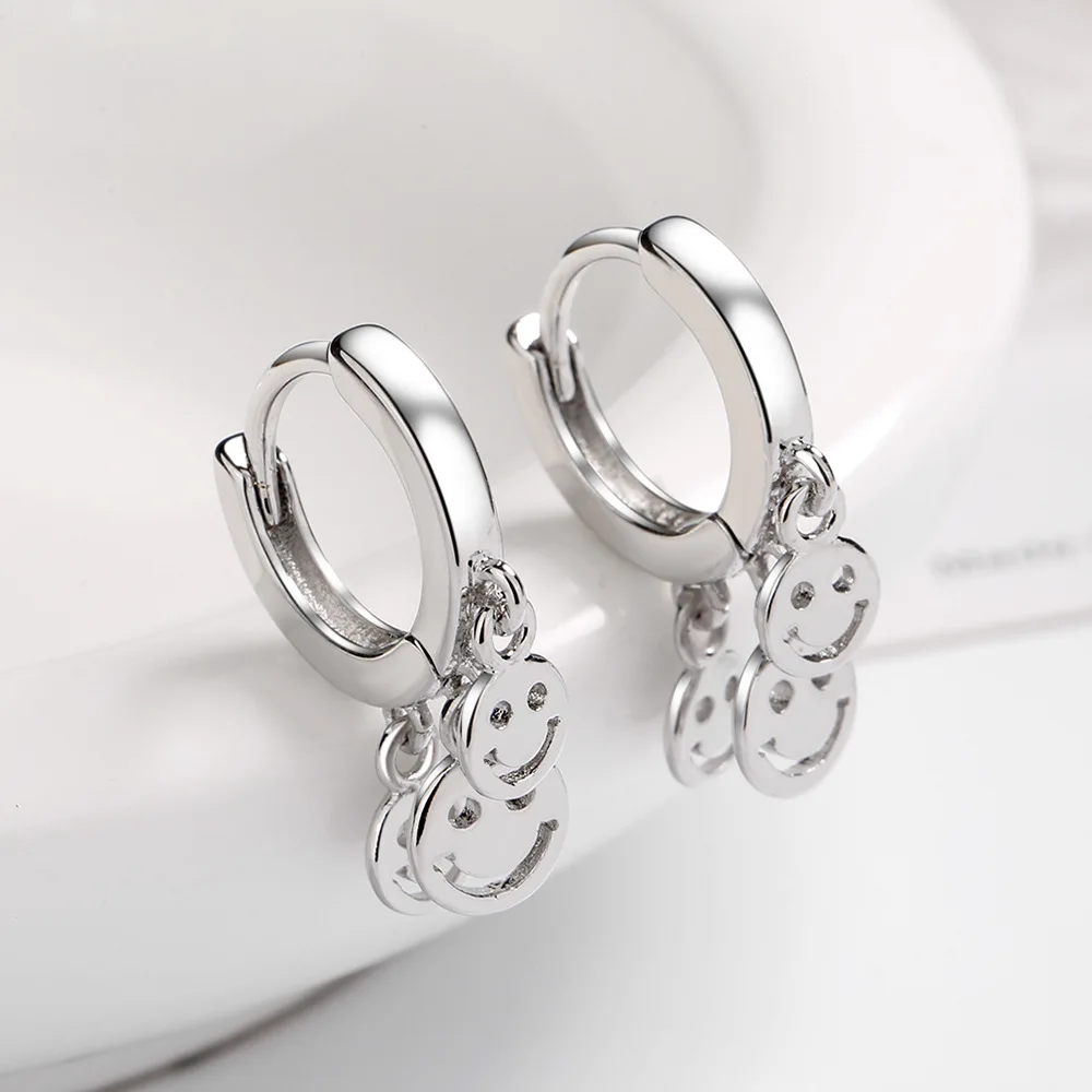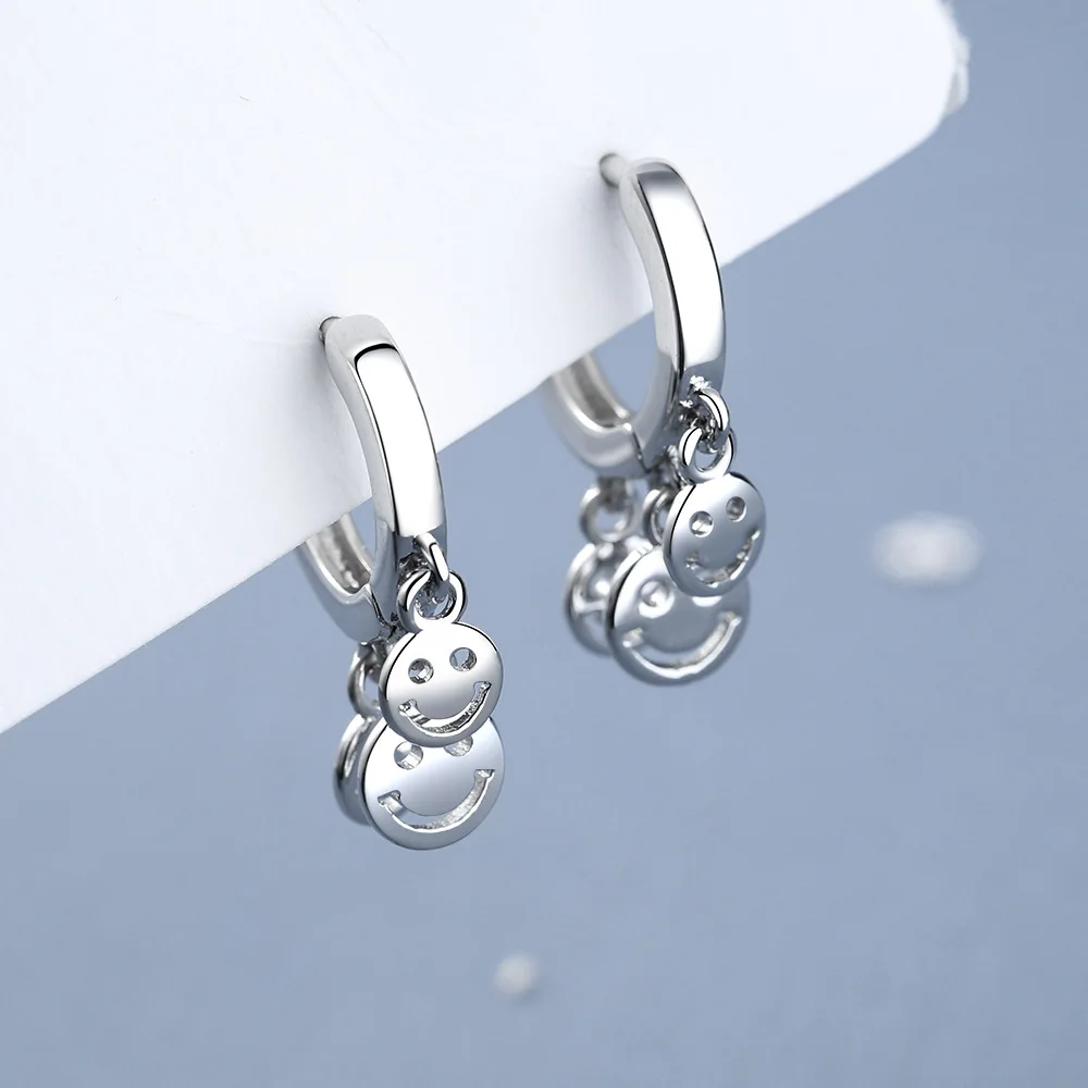 Серьги-подвески серебряные женские в стиле панк с изображением смайлика