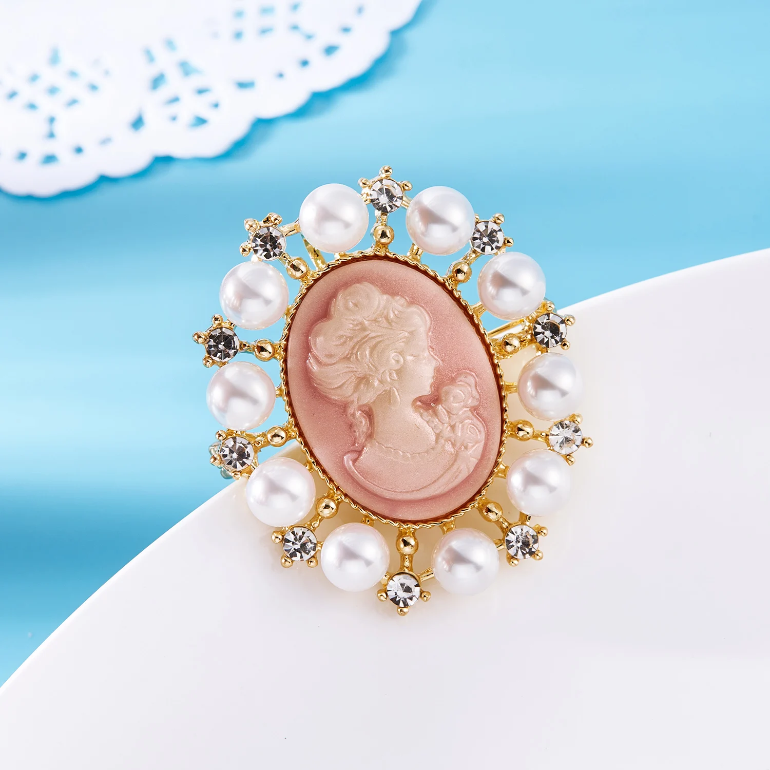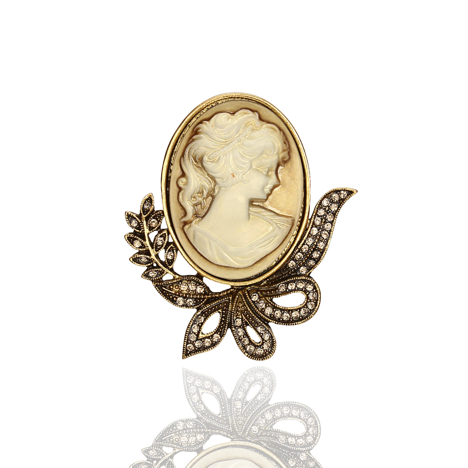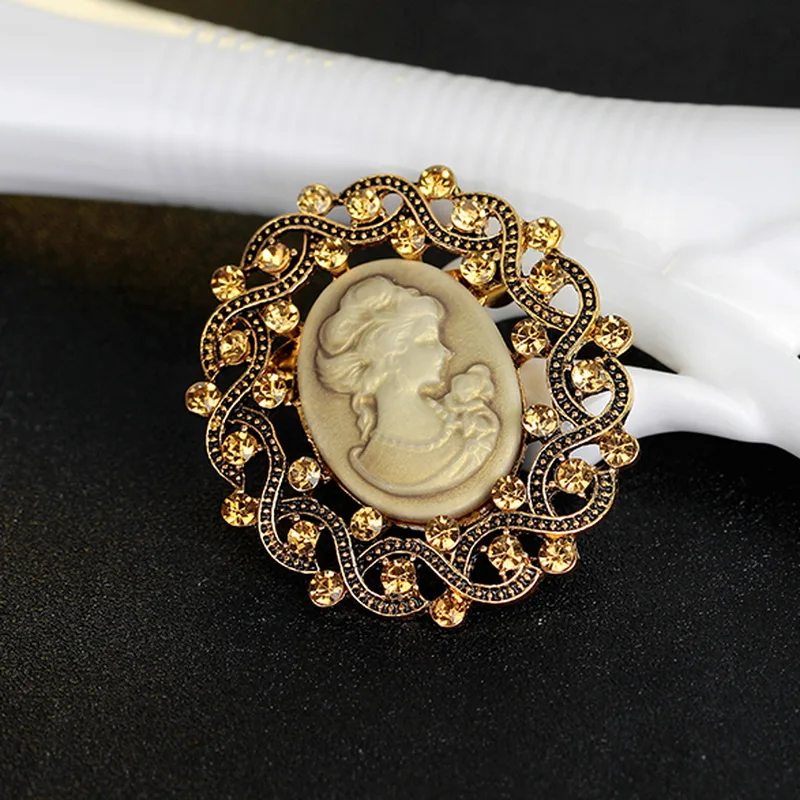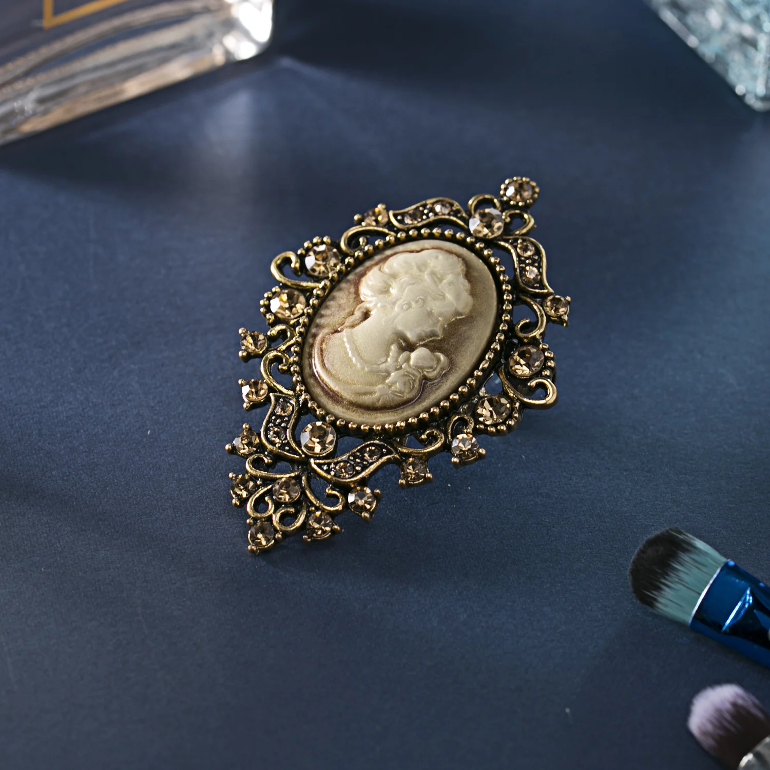 Женская Винтажная брошь Rinhoo Crystal Cameo Beauty Head, на булавке, с фигурным отворотом, для офиса, на каждый день, свадебные украшения