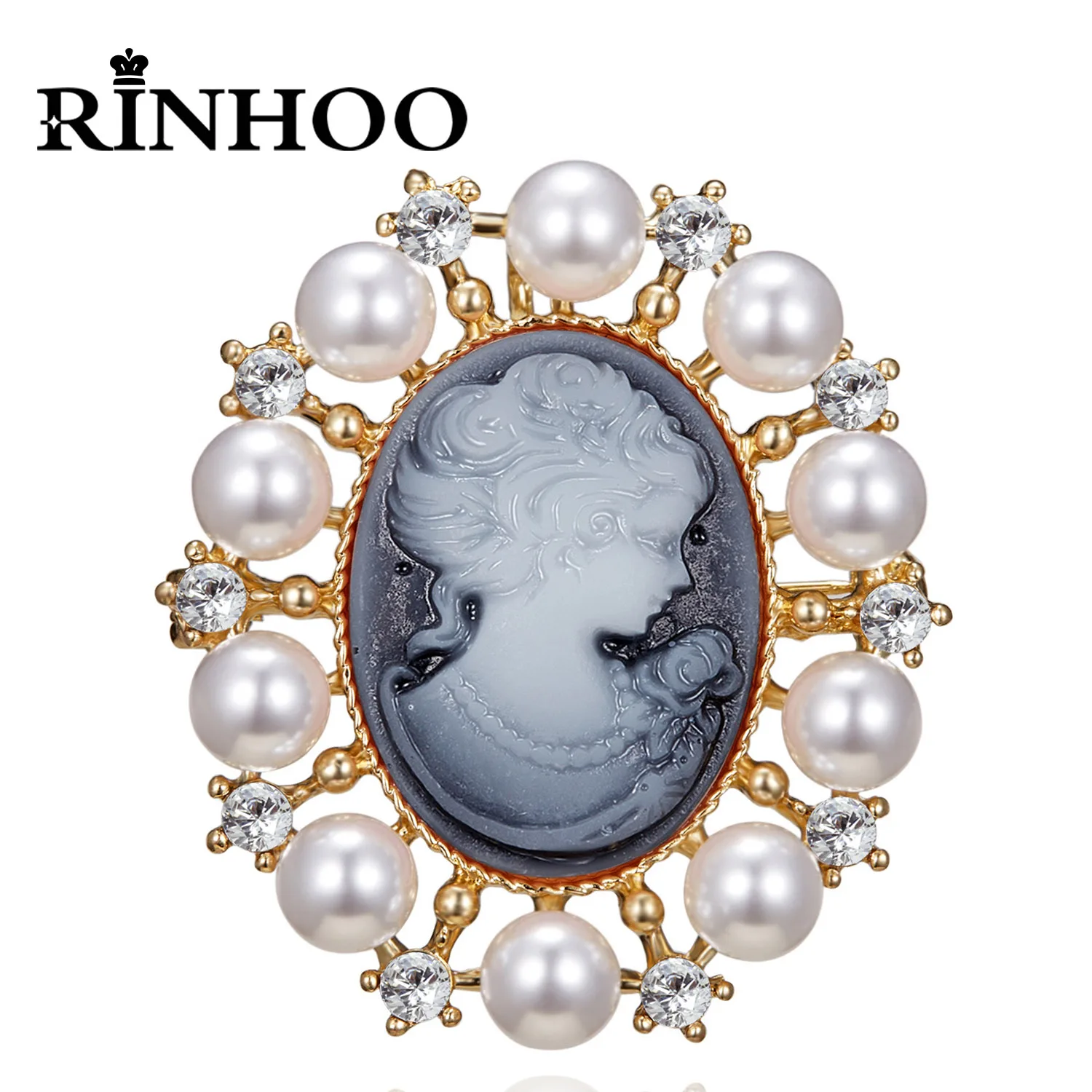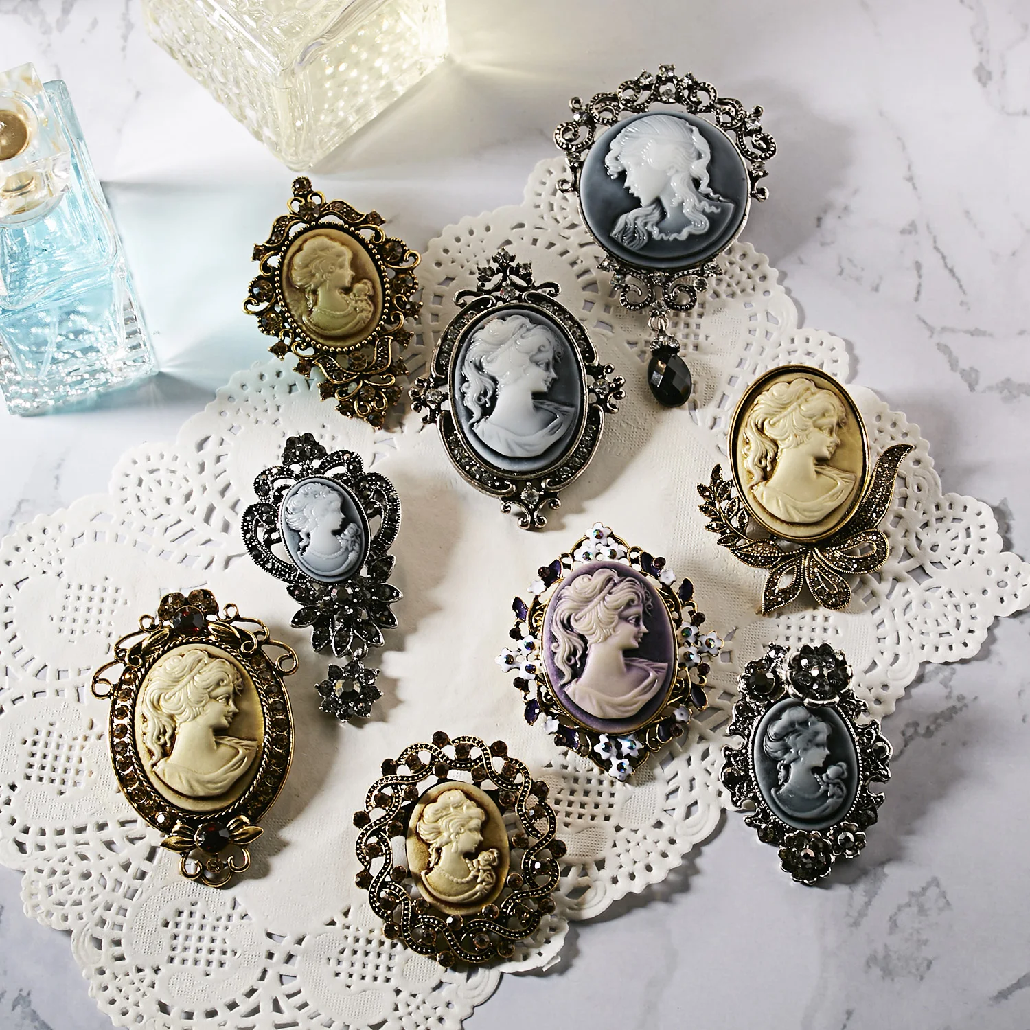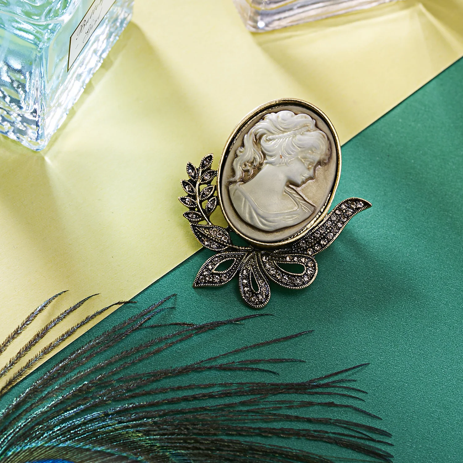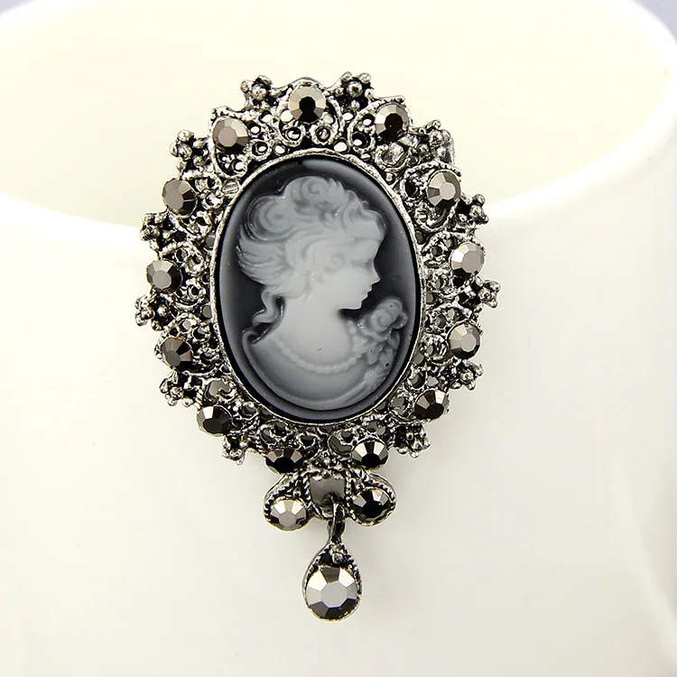 Женская Винтажная брошь Rinhoo Crystal Cameo Beauty Head, на булавке, с фигурным отворотом, для офиса, на каждый день, свадебные украшения