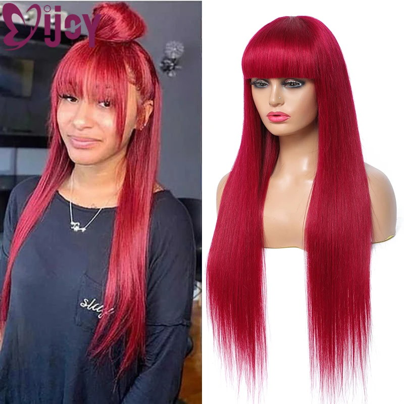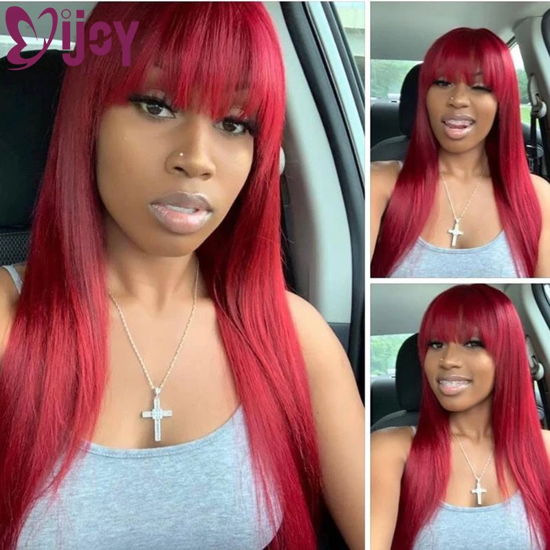 IJOY бразильские прямые человеческие волосы парики с челкой для черных женщин 99JБургунди Remy человеческие волосы парик полностью машинная работа парик