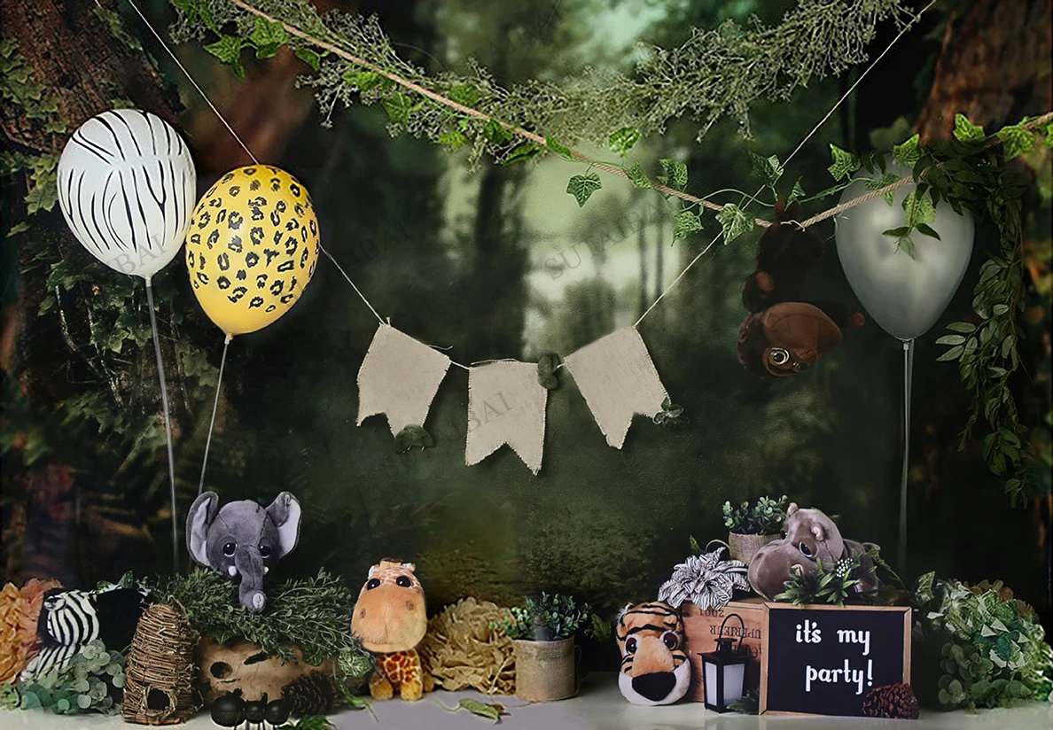 Фоны для фотосъемки 1-й День рождения джунгли сафари лес принцесса ...