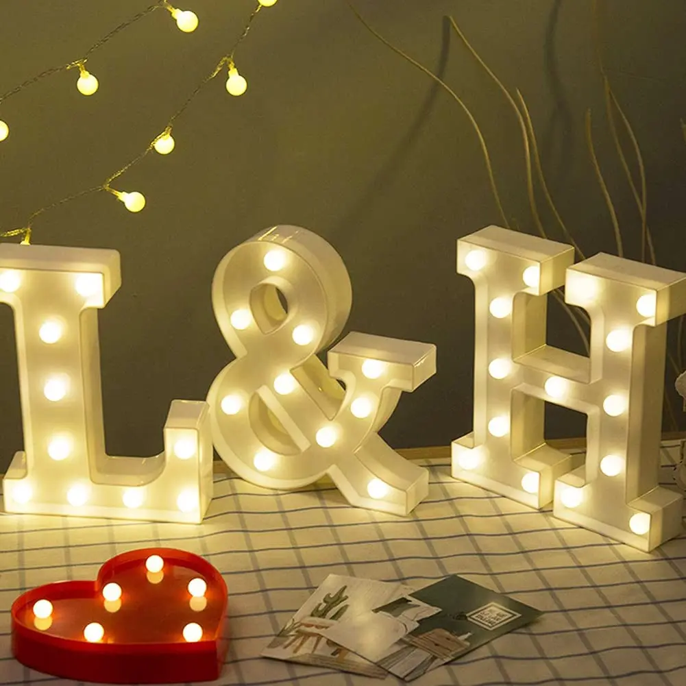 Письмо LED светильник s светильник со светодиодной подсветкой буквы знак для ночной Светильник Свадьба/День рождения Батарея на солнечных батареях Рождество светильник домашний декор бара
