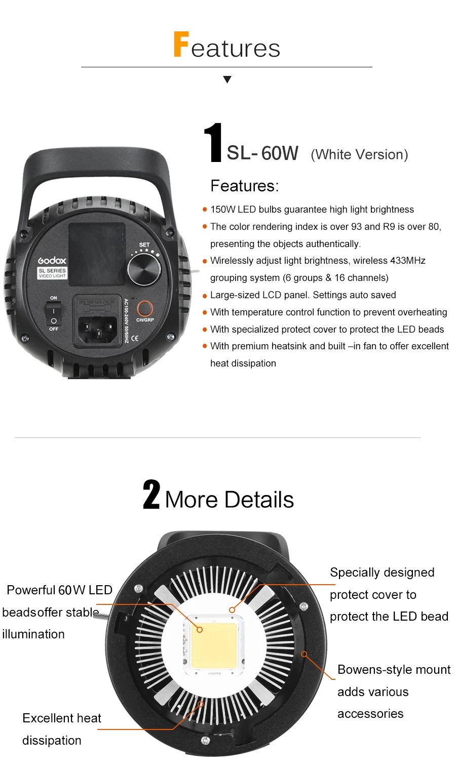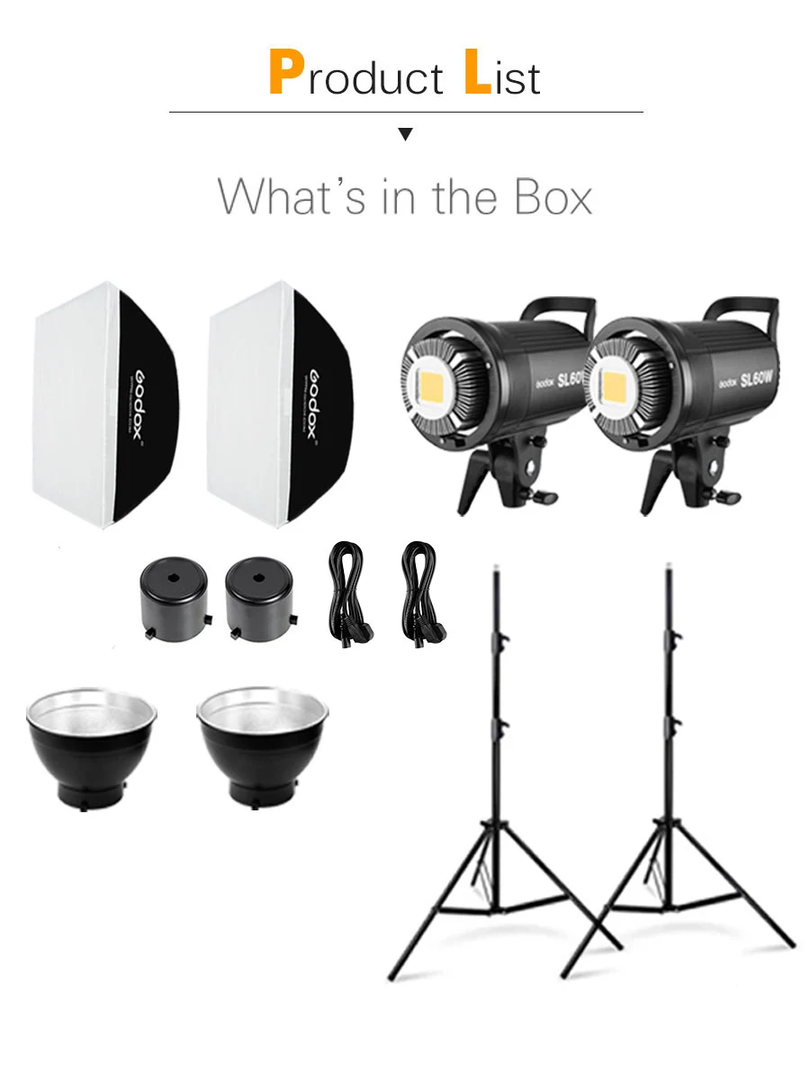 2x Godox SL-60W 60Ws 5600K студийный светодиодный непрерывный свет ...