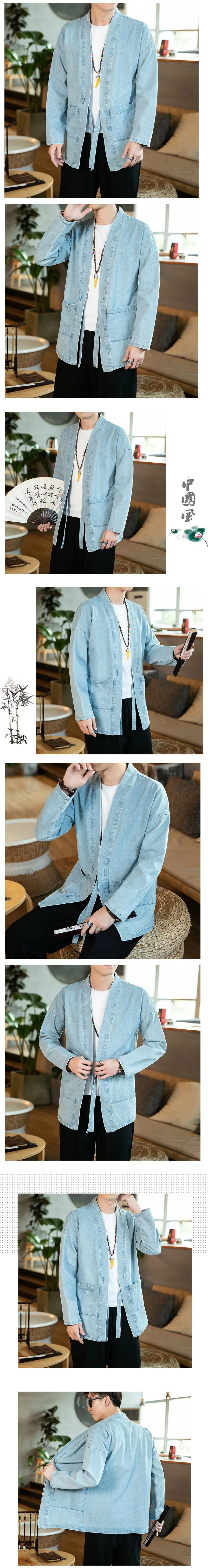 Традиционный костюм Тан в китайском стиле, осень 2022, Мужская джинсовая куртка, уличная одежда, кардиган, куртка, модная куртка ханьфу