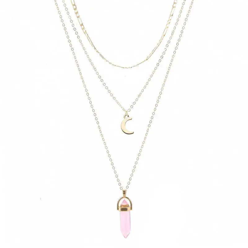 Ожерелье в богемном стиле, Модное Новое темпераментное ожерелье для девушек, многослойное ожерелье с кулоном в виде розовой Луны с кристаллами, женские ожерелья, распродажа, Joyas