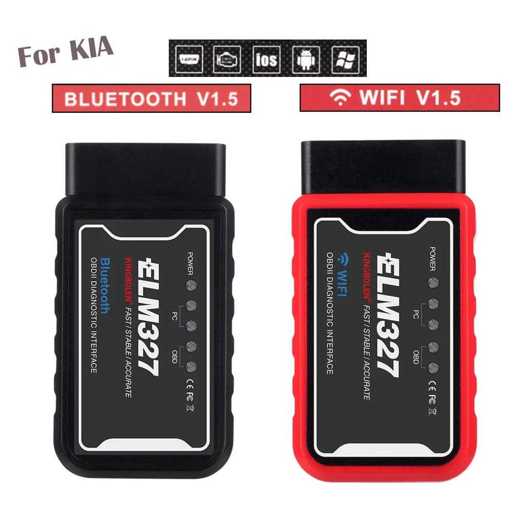 Диагностические инструменты ELM327 OBD2 для Kia K5 KX5 K3 RIO Stinger Soul Ceed K9 KX3 SPORTAGE V1.5 WIFI Bluetooth
