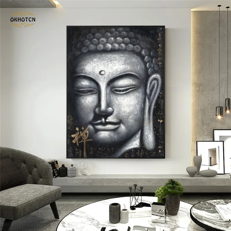 Винтажная картина маслом серебряного Будды печать на Cnavas художес...