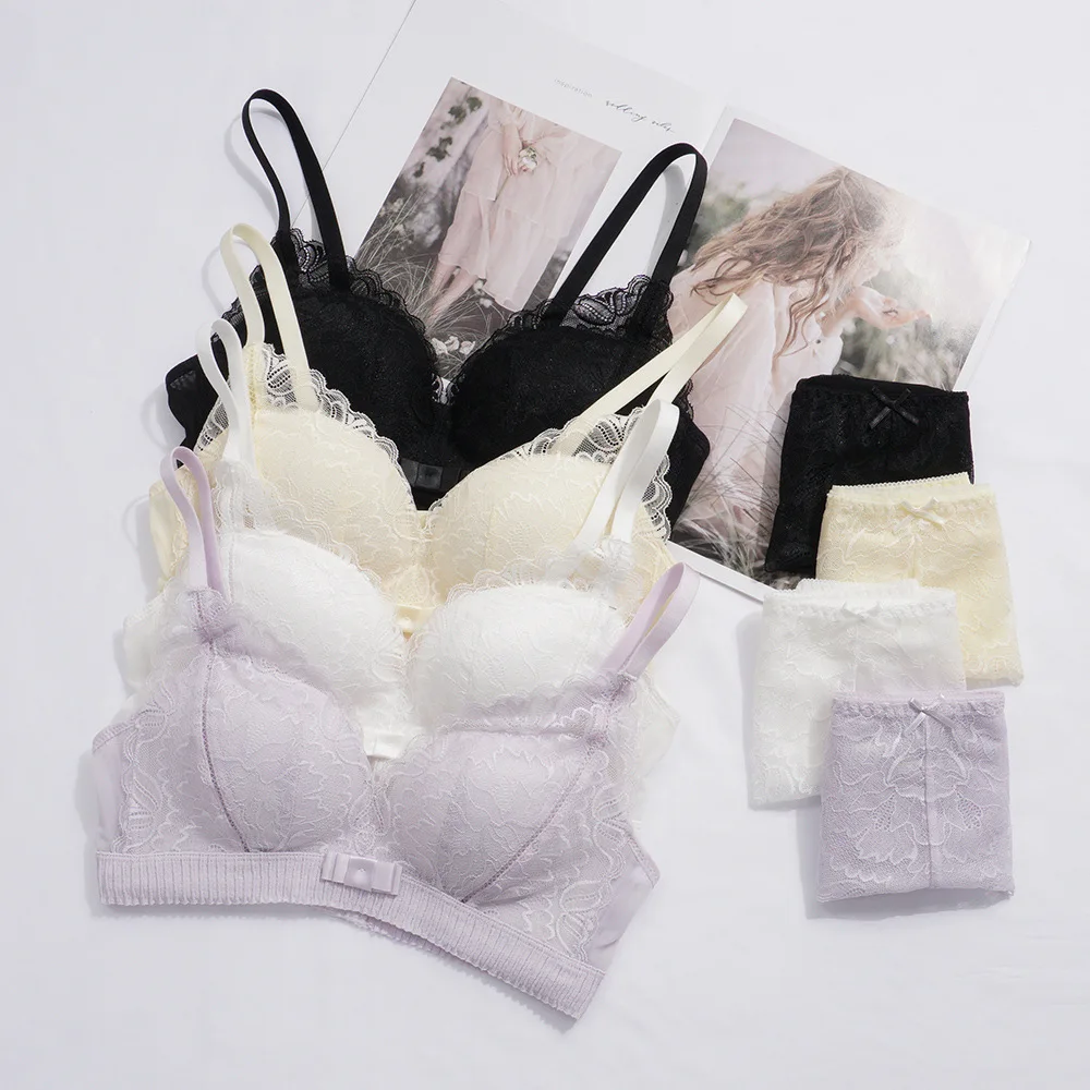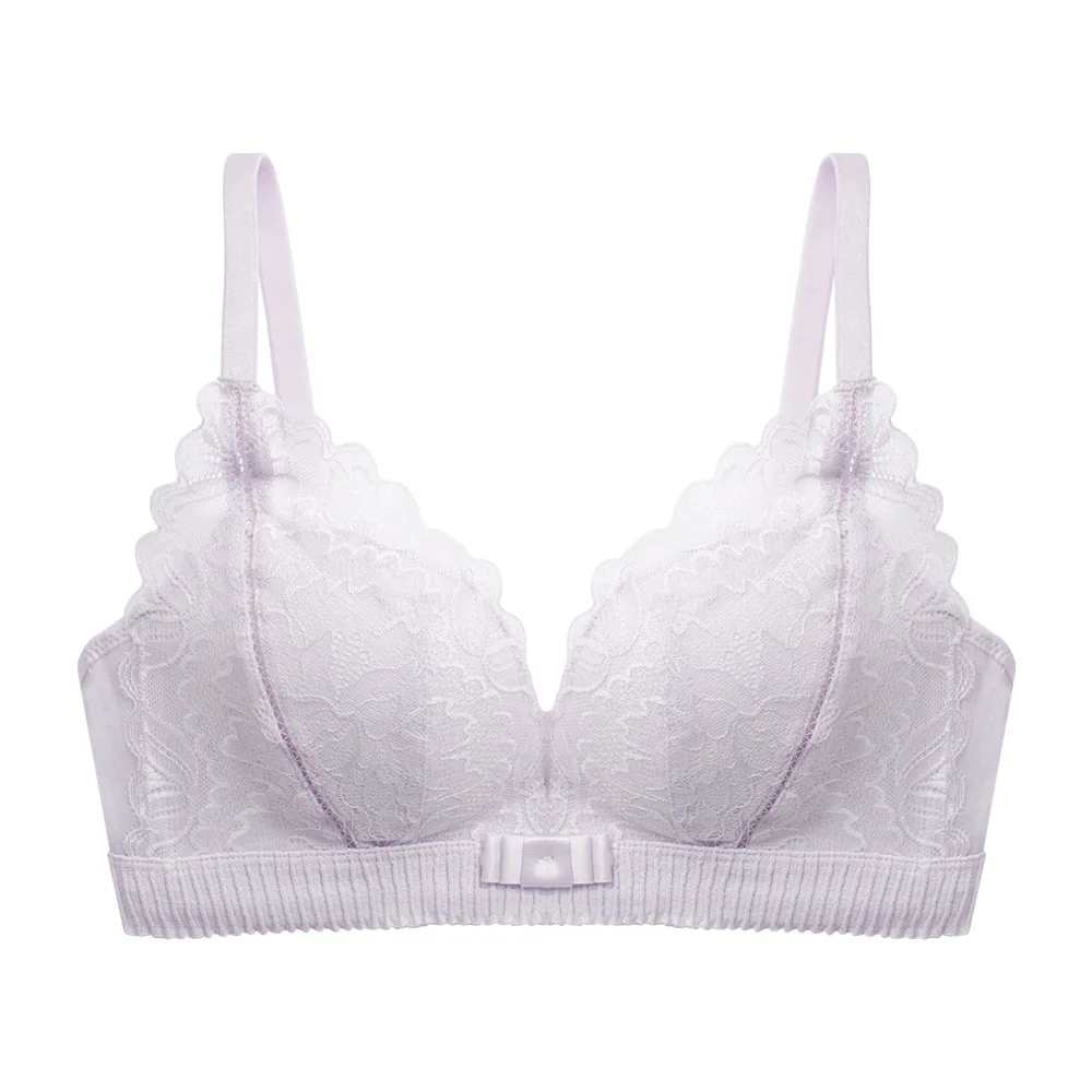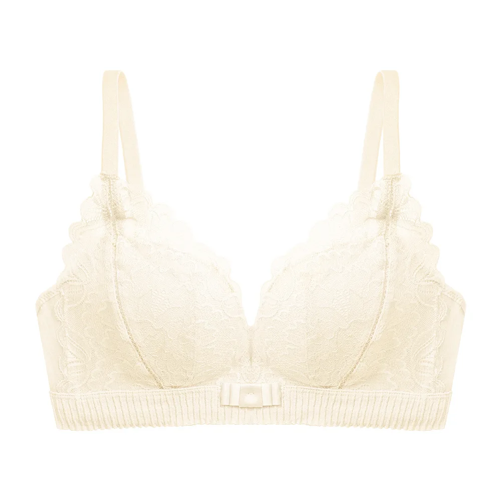 Чистый белый японский кружевной бюстгальтер с вырезами, модал, облако, хлопок, без косточек, маленькая грудь, сборное нижнее белье