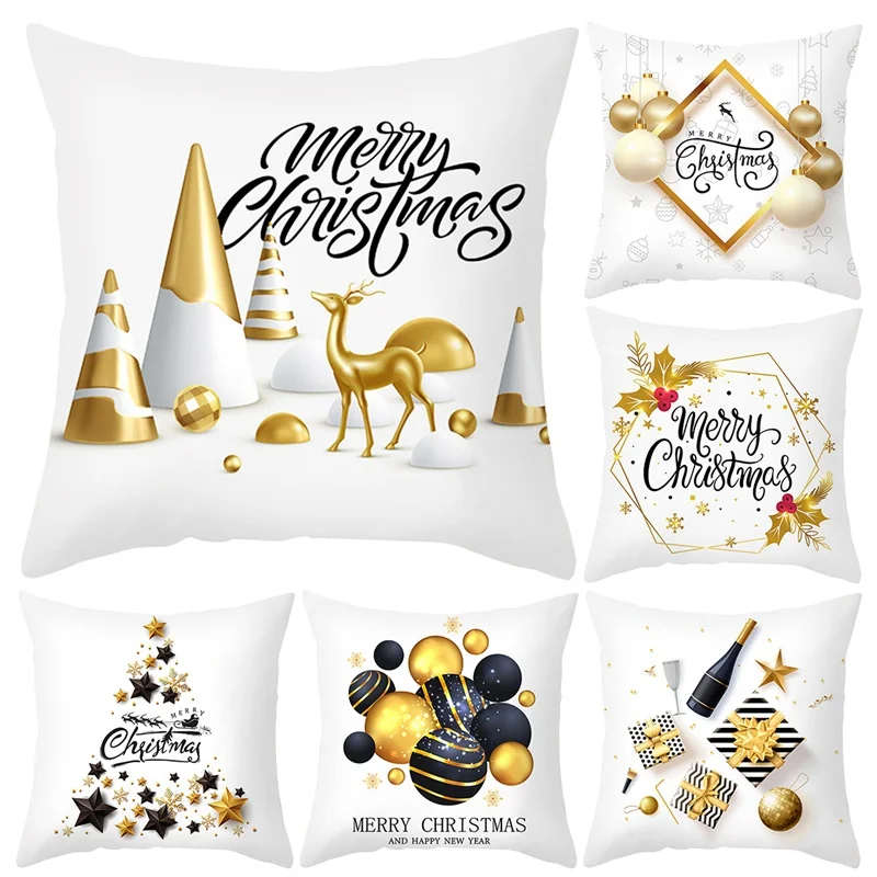 Рождественское украшение для дома, золото черный Чехол на подушку, ...