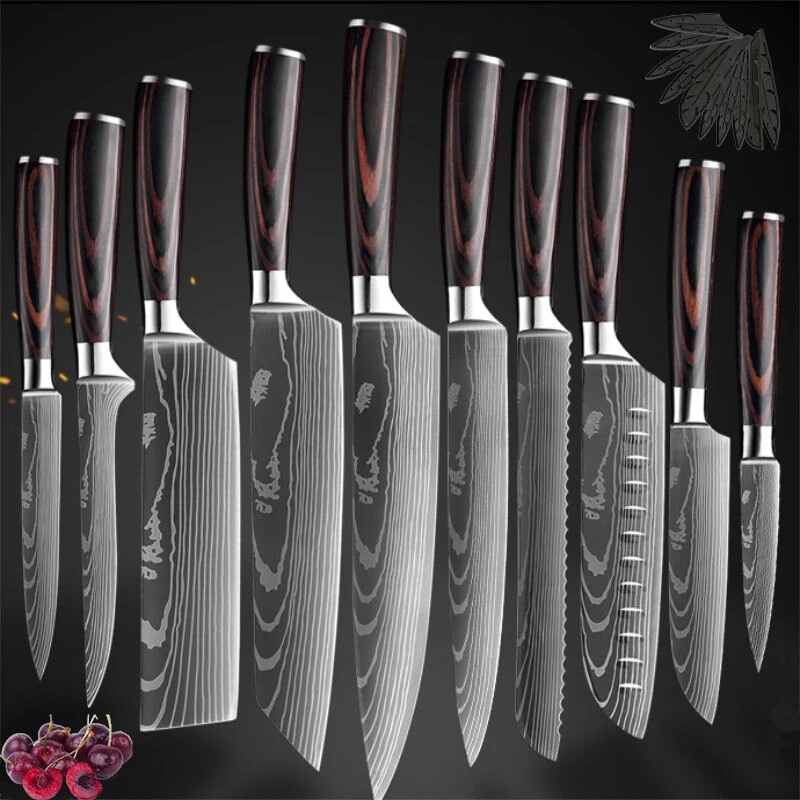 Кухонные ножи из нержавеющей стали с лазерным узором, шеф-повар сантоку, Мясницкий резак, универсальные инструменты для обрезки Gyuto