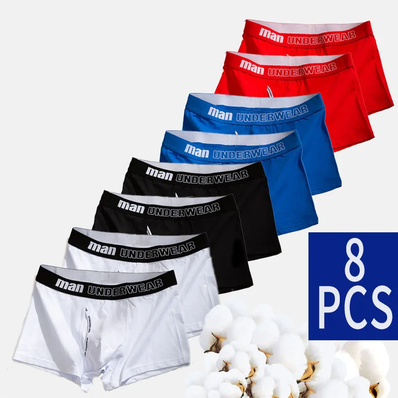 8 шт., мужские однотонные хлопковые трусы-боксеры