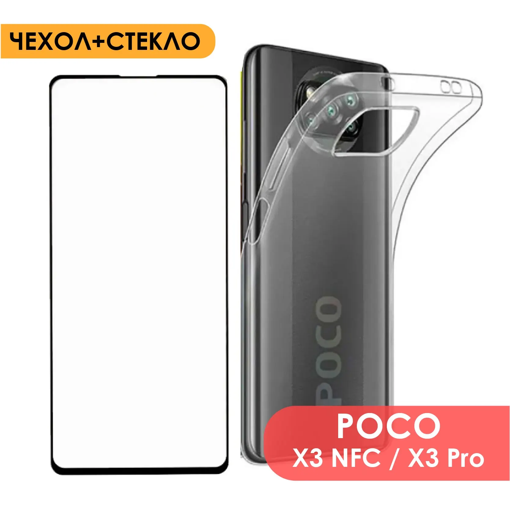 Комплект 2 в 1: Защитный чехол + защитное стекло для Poco X3 NFC и Poco X3 Pro ( Поко х3 про)
