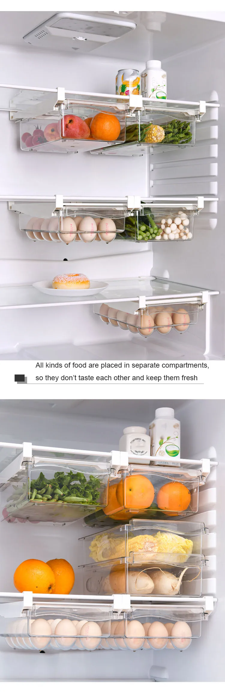 Полки, могут хранить яйца, овощи, морепродукты, фрукты и т. Д., чтобы сохранить холодильник аккуратным и чистым.