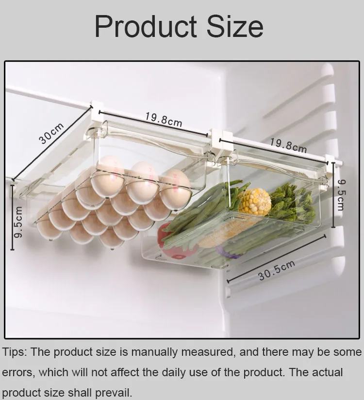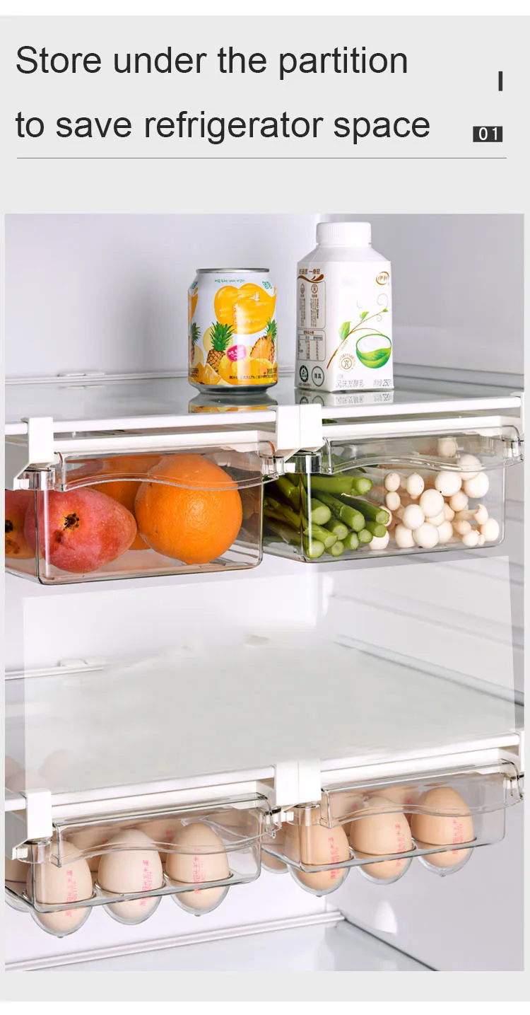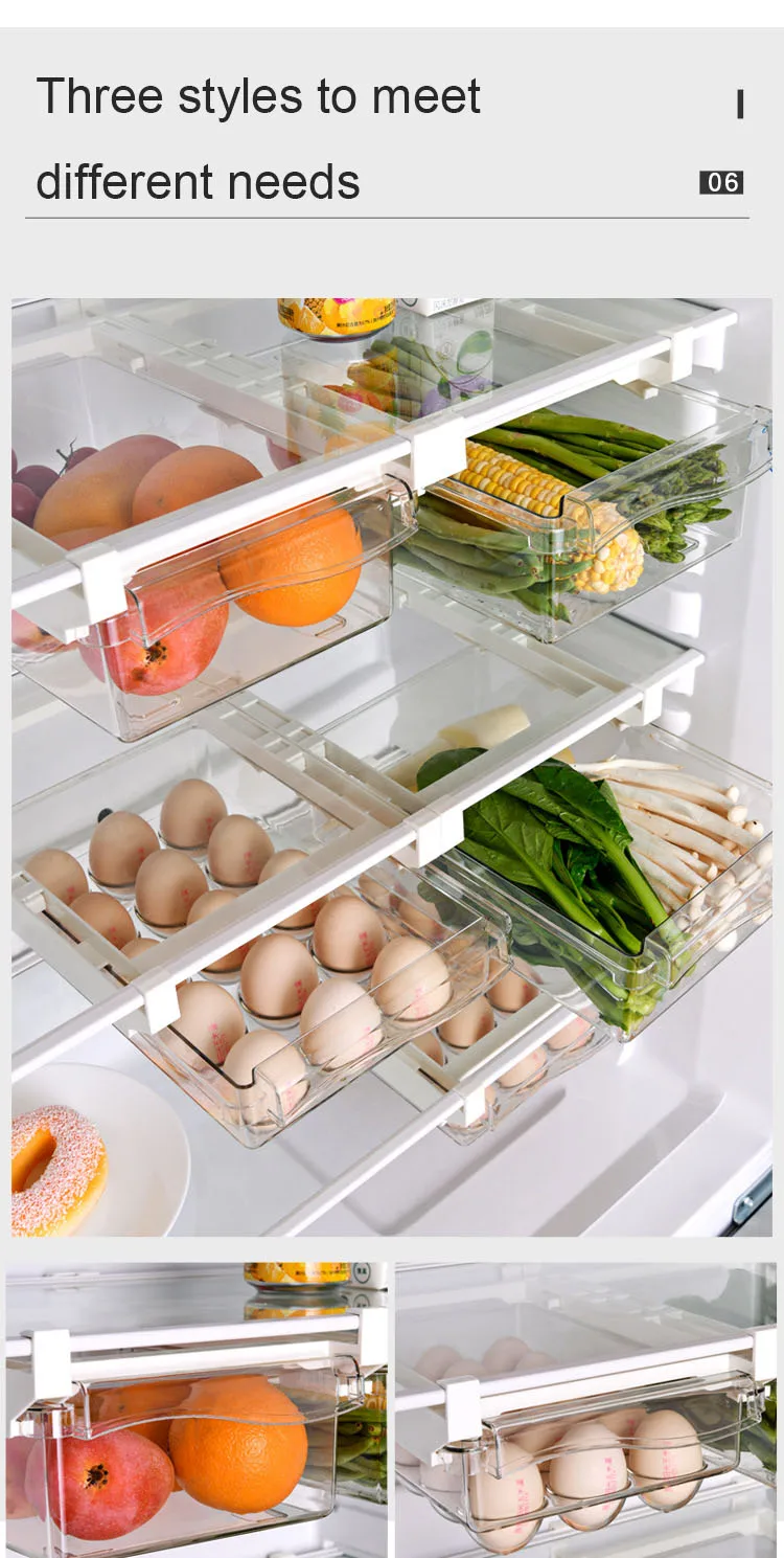 Кухонный органайзер, прозрачный Регулируемый пластиковый ящик, контейнер для пищевых продуктов, контейнер для хранения овощей и яиц в холодильнике