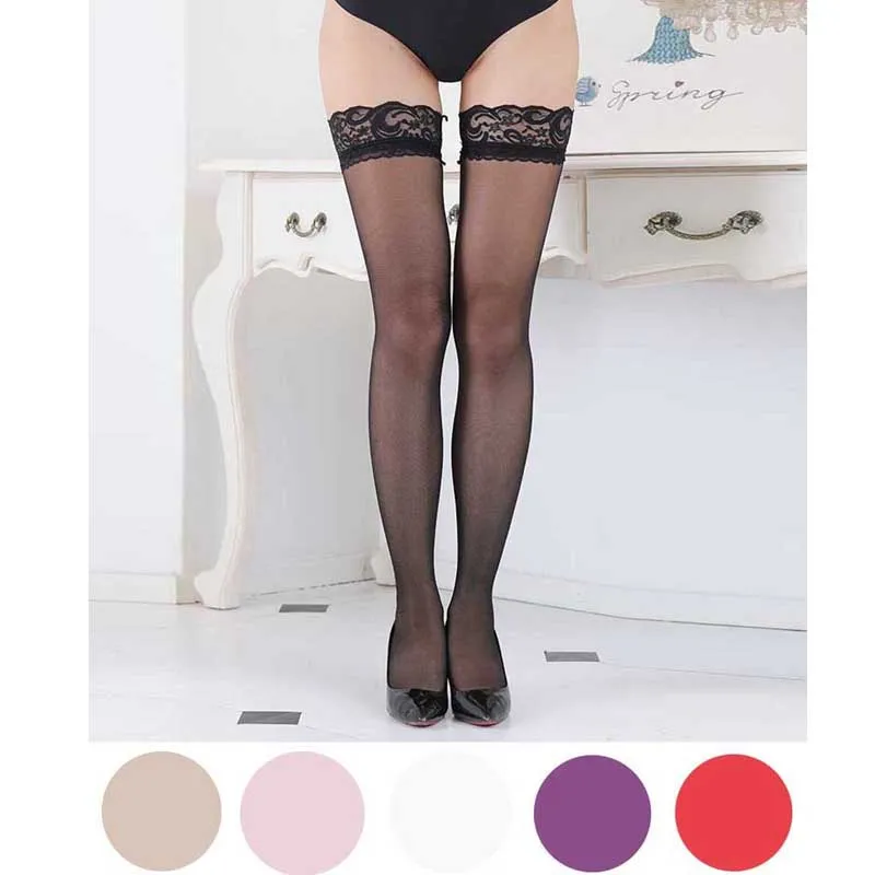 Женские прозрачные сексуальные чулки кружевной верх чулки до бедра ...