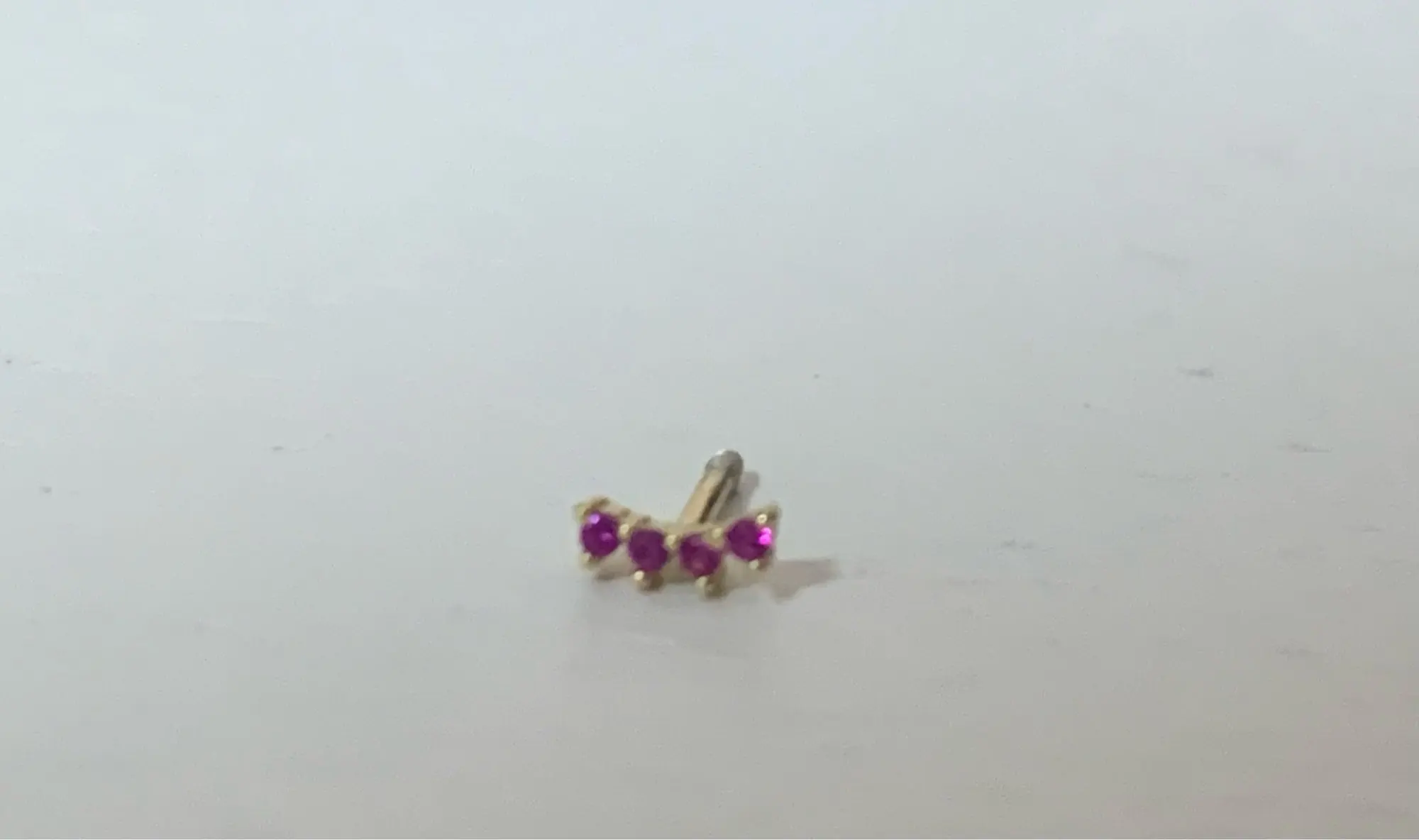 Это супер мило, это фуксия, и золото в порядке, это не желтый, как другие. Это довольно мало, поэтому для пирсинга это выглядит хорошо. Нить в форме шарика мне не особенно нравится, но цена очень хорошая. Я рекомендую это.