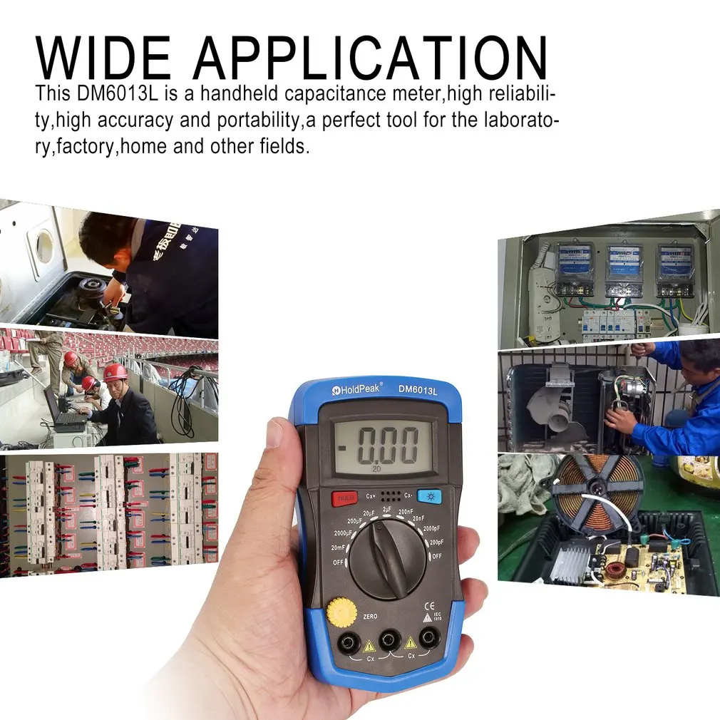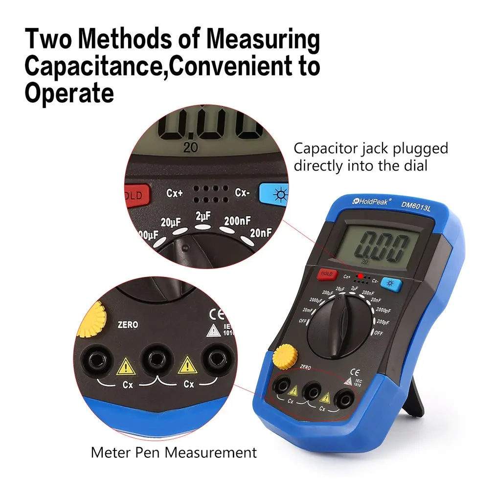 1. Может отображать 1999 количество и емкость теста от диапазона 200pF ~ 20mF.