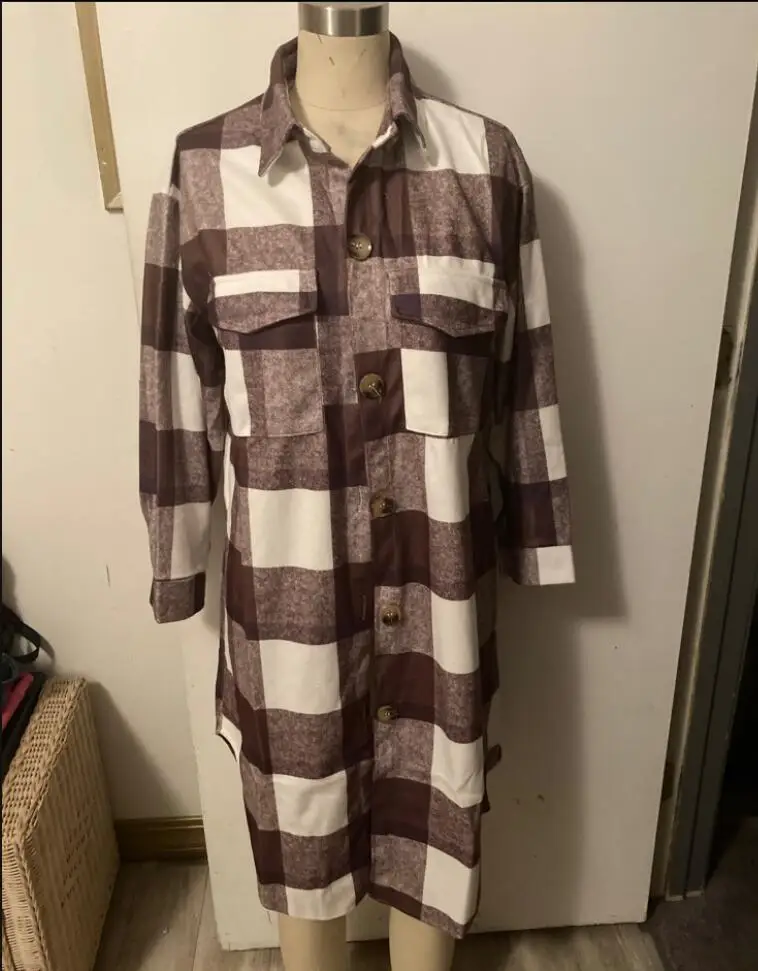 Женское модное длинное пальто в клетку, осенняя рубашка, шерстяное ...