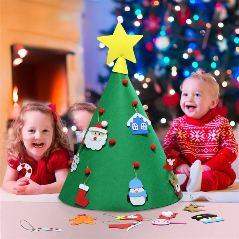3D конус DIY войлочная Рождественская елка Рождественское украшение для дома 2021 Новогодние рождественские украшения для малышей Детские Рождественские подарки