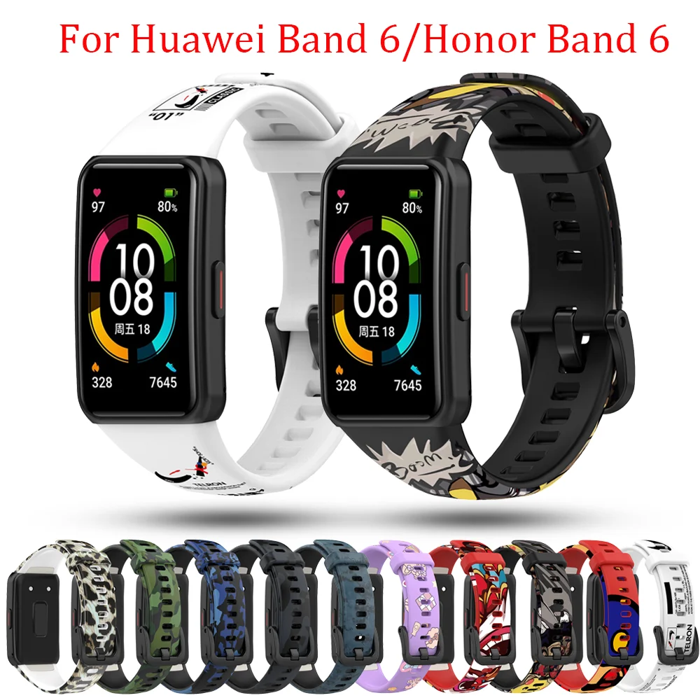 Силиконовый ремешок с принтом, совместимый с Huawei Band 6Honor Ban...
