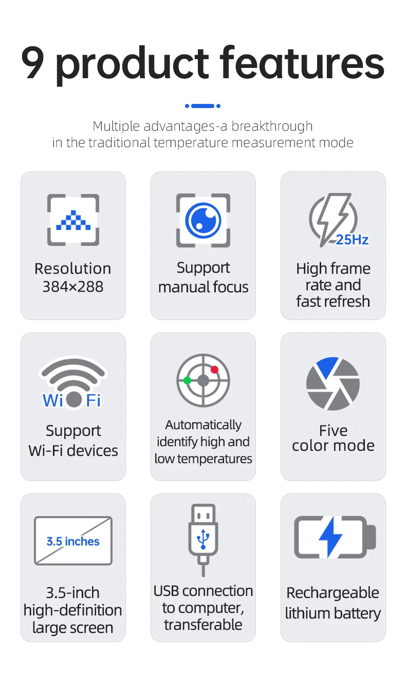 Это то, что рекомендовано другом. Все в порядке и удобно. Обычно используется для обнаружения аномальных условий нагрева, таких как электрические приборы и распределительные шкафы. Продукт имеет 3 видимые точки измерения температуры, легко устраняет отклонения, и точки неисправности ясны с первого взгляда. Кроме того, существует также Функция измерения температуры и анализа, которая может генерировать отчет анализа одним щелчком. Технология очень хорошая.