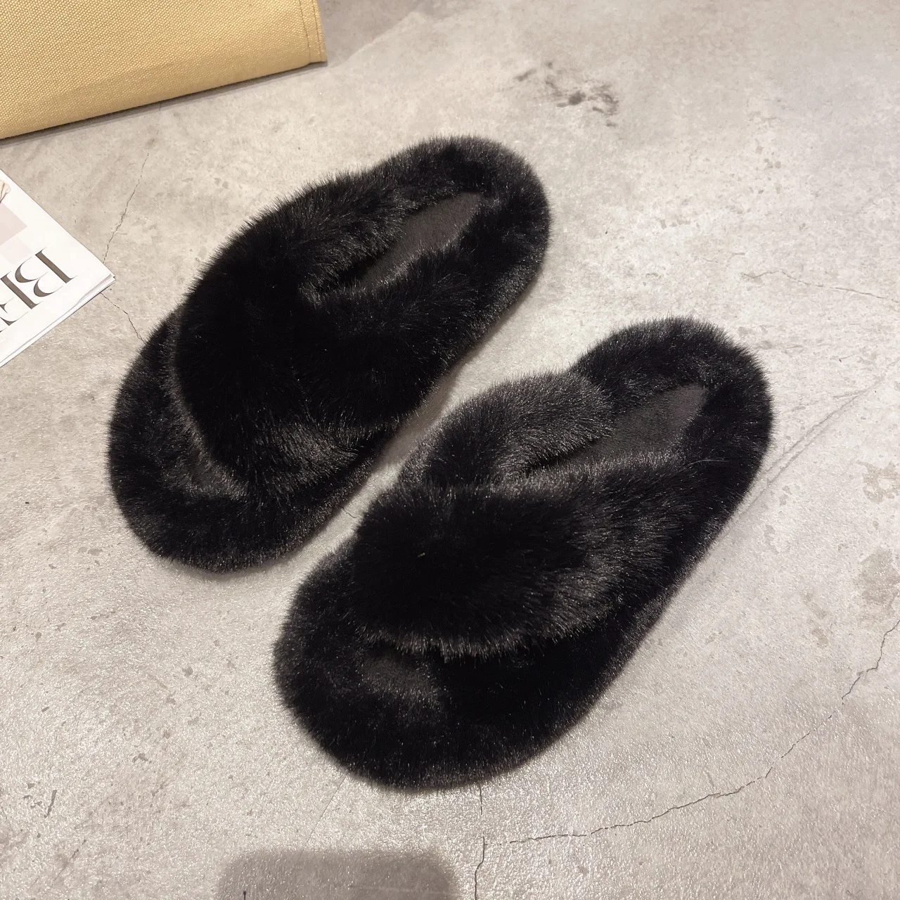 Женские меховые шлепанцы, зимние, черные, розовые, теплые
