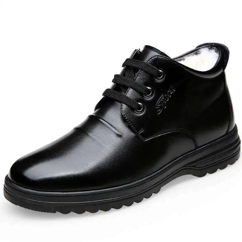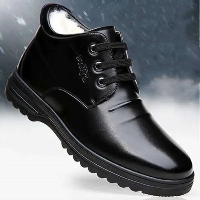 Мужская кожаная обувь, с высоким берцем и плюшевой подкладкой, водо...
