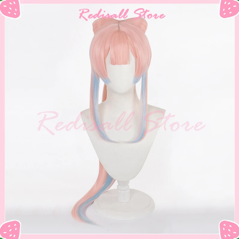 Парик для косплея Genshin Impact Kokomi с бантом, хвост, 90 см, длинные прямые волосы, Смешанные розовые и синие термостойкие синтетические игры для ролевых игр