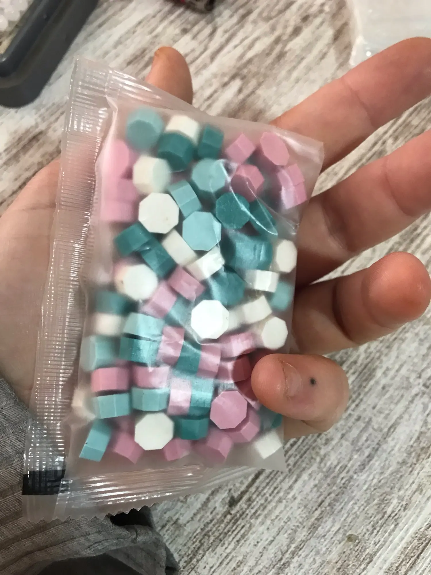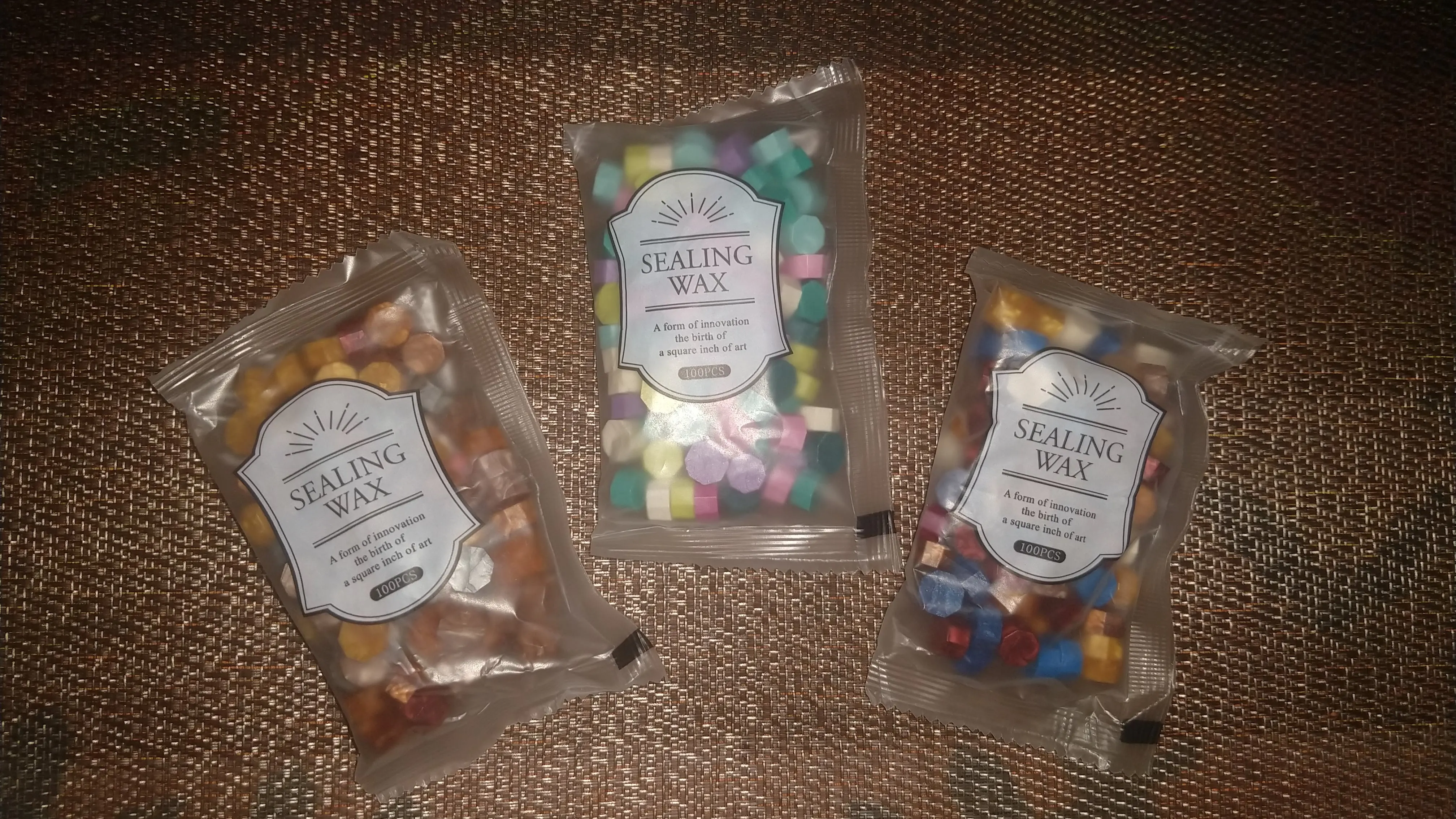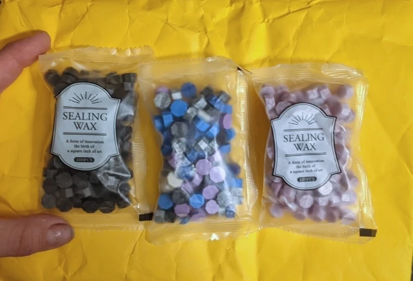 Думала что пакетики будут больше, но они довольно маленькие. Красивые цвета, 1 пакета хватит примернл на 20 сургучных печатей
