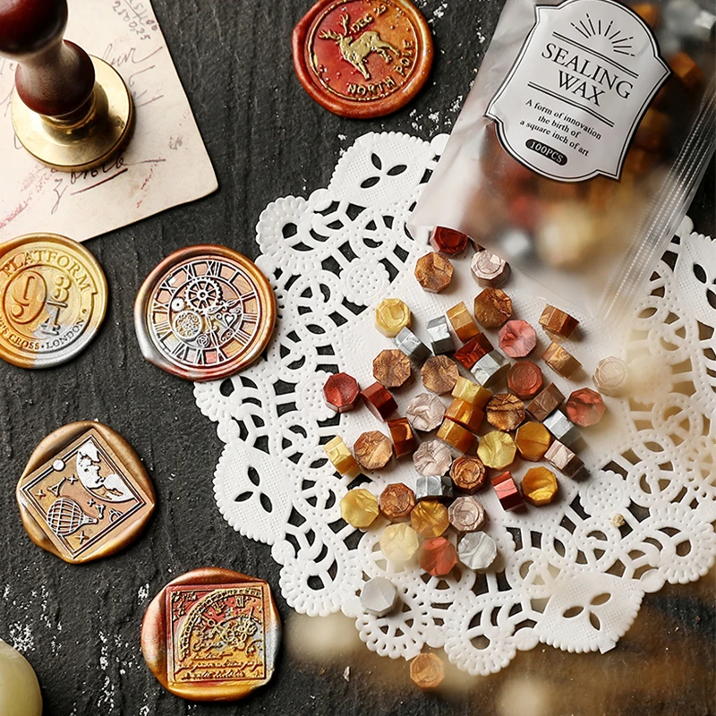 100 шт.пакет смешанные цвета, воск, винтажная печать, штамп, бусины для скафбукинга, рукоделие, подарок, Свадебное приглашение