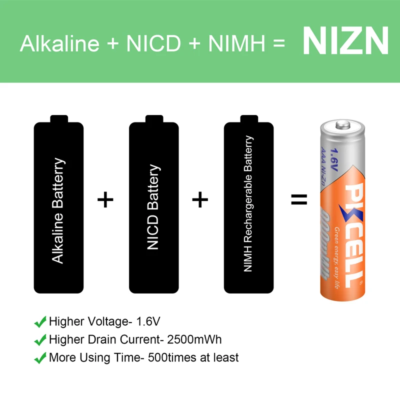 50 шт. PKCELL 1,6 В AAA NIZN перезаряжаемые батареи 900 мВтч батарея AAA высокого напряжения, совместимая с цифровой камерой, компакт-диск, игровой автомат, игрушка