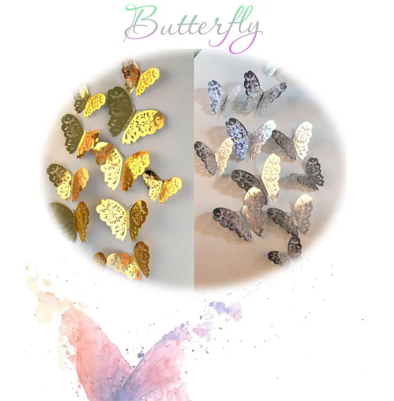 12 шт.лот 3D металлик на ощупь полые бабочки наклейки на стену для ...