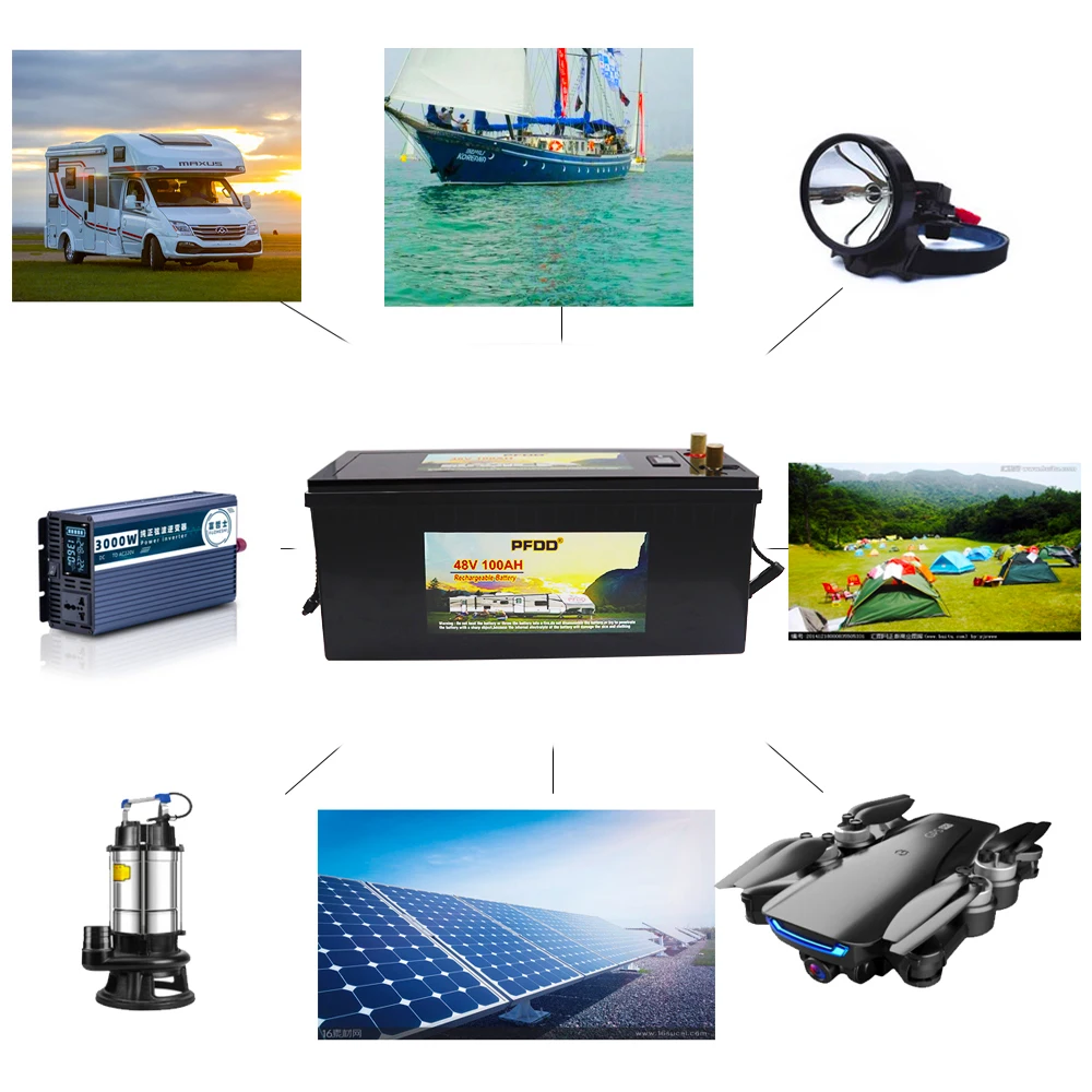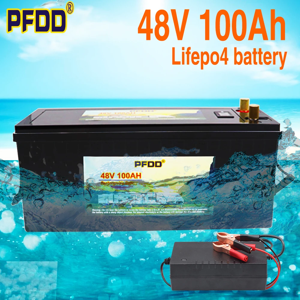 Литий-железо-фосфатный Аккумулятор LiFePO4 48 В с BMS 100 Ач для гольф-мобиля EV RV инвертор для хранения солнечной энергии лодочный двигатель