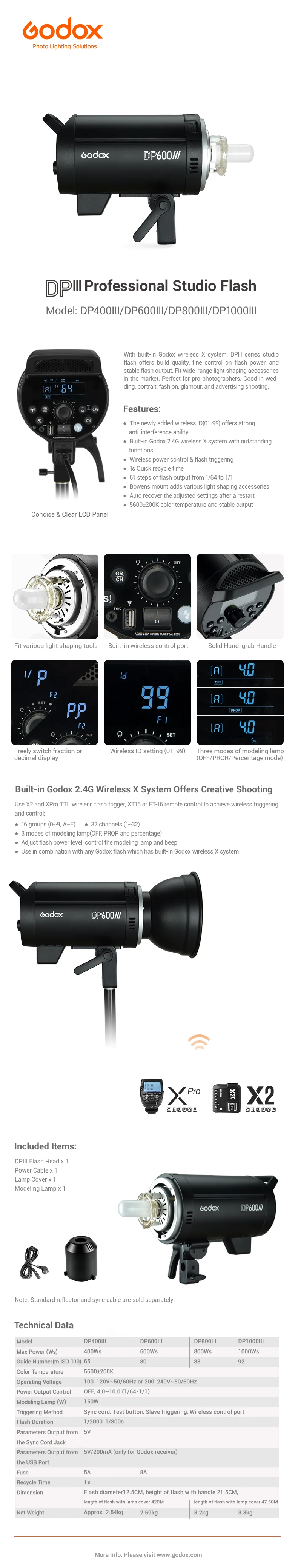 Передатчик Godox DP400III DP600III DP800III DP1000III 2,4G X2T, ...