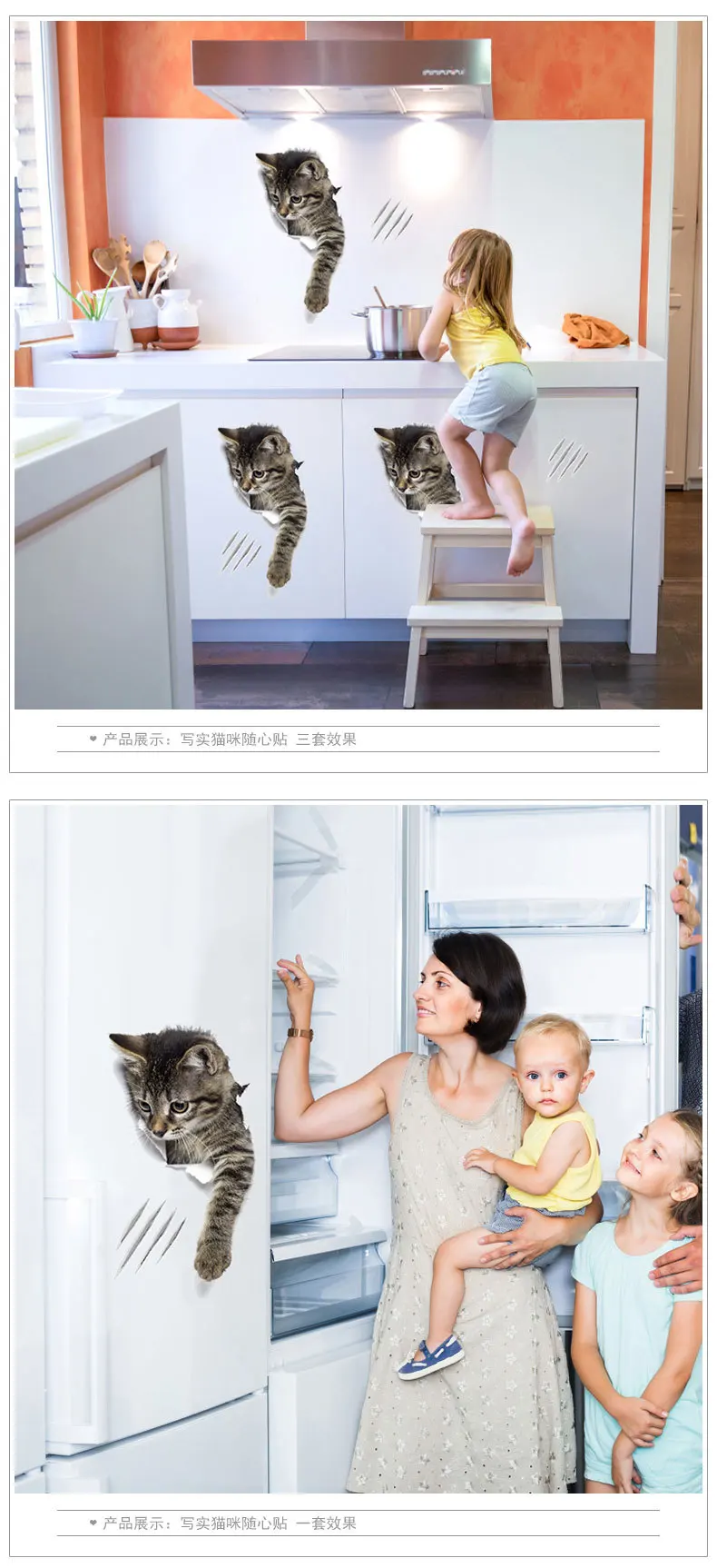 Наклейки для унитаза, 3D кошка, яркая Наклейка на стену, модные милые животные, водостойкие наклейки для ванной, туалета, кухни, декоративные