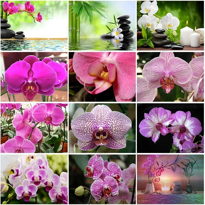 Алмазная 5D картина сделай сам, полноформатная Круглая Мозаика из полимера с цветами, Орхидея, наборы для вышивки крестиком, украшение на стену, подарок