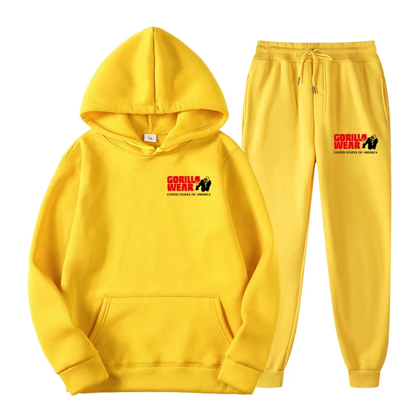 Мужская повседневная флисовая толстовка с капюшоном и штаны, с надписью